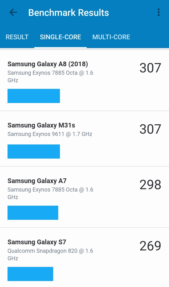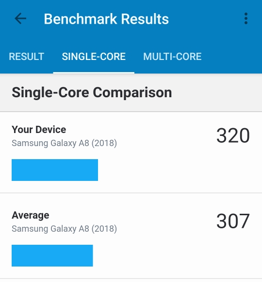 우선 갤럭시 A8 2018의 긱벤치 점수를 살표보겠습니다.