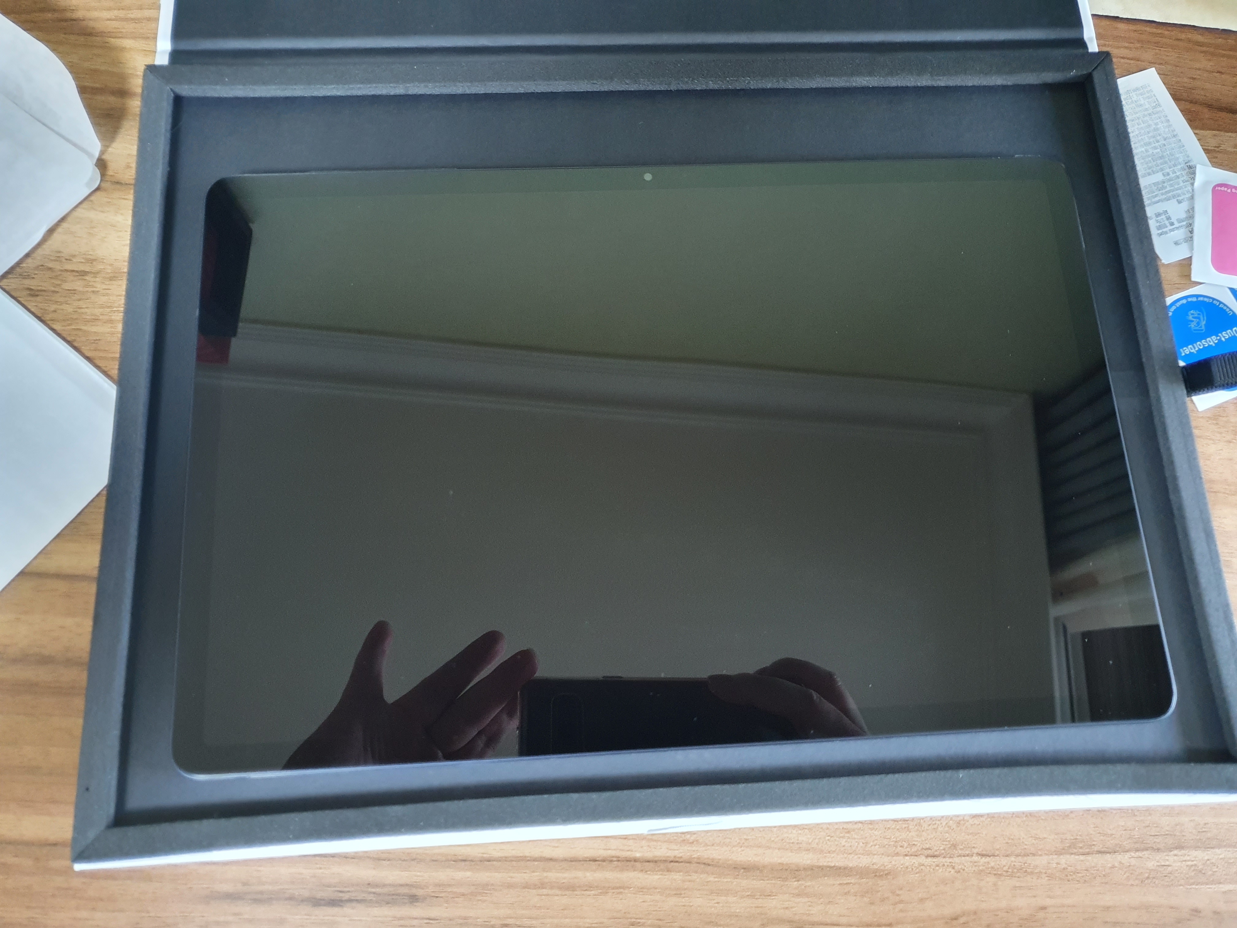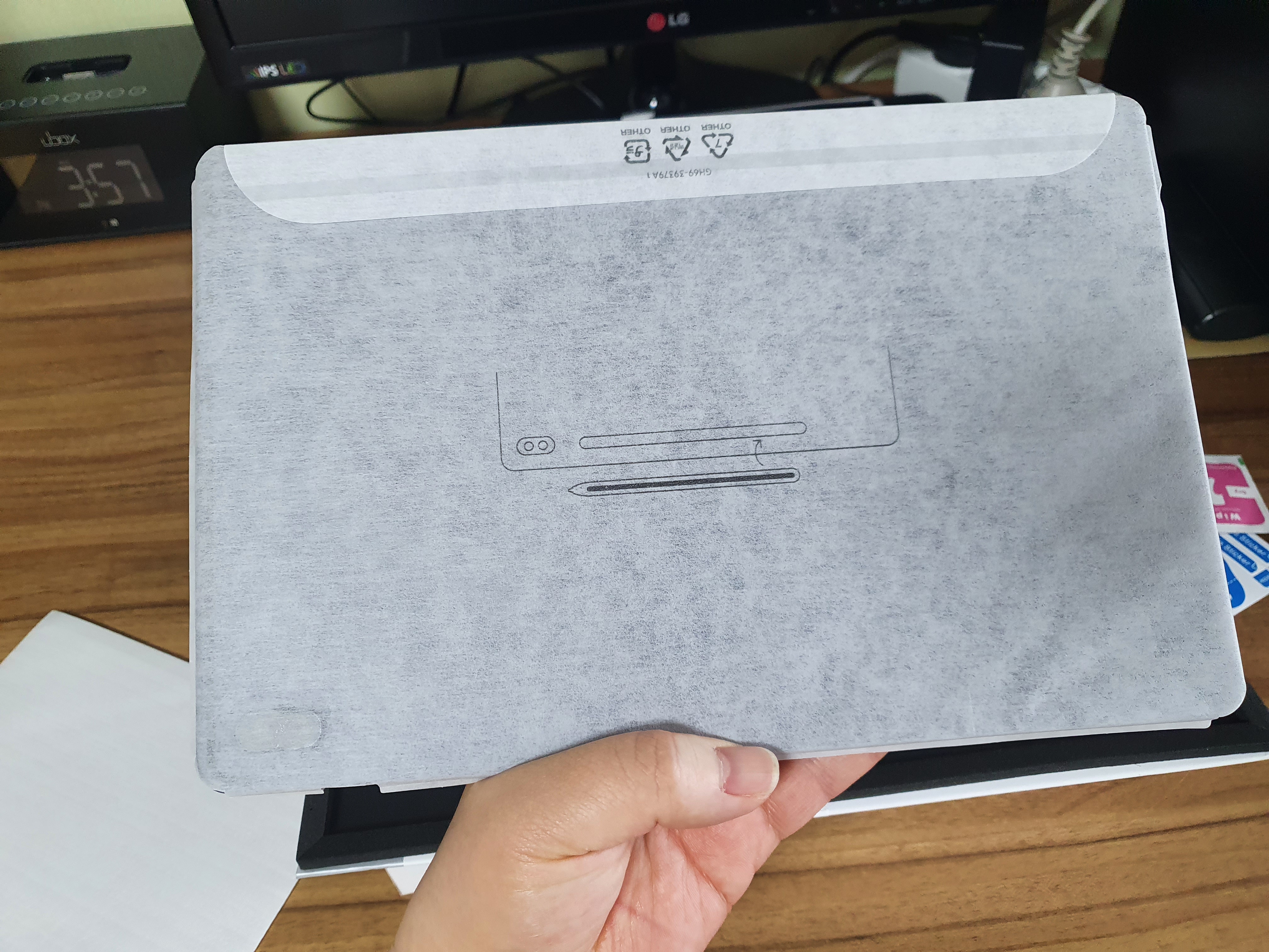 이제 테블릿 박스를 열고 갤럭시 탭s7 fe를 꺼냅니다.