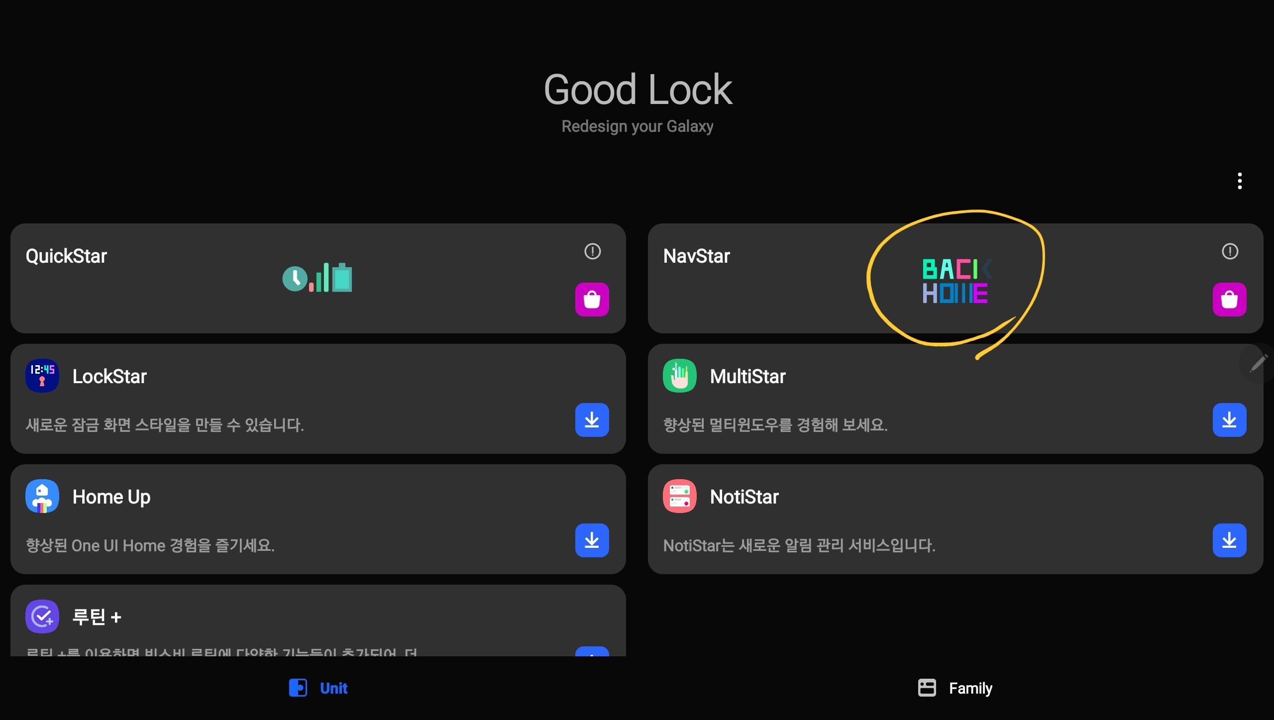 5. 굿락 앱을 설치가 완료되면, 앱을 실행하고, 오른쪽 에 있는 NavStar 라는 앱을 설치해줍니다.
