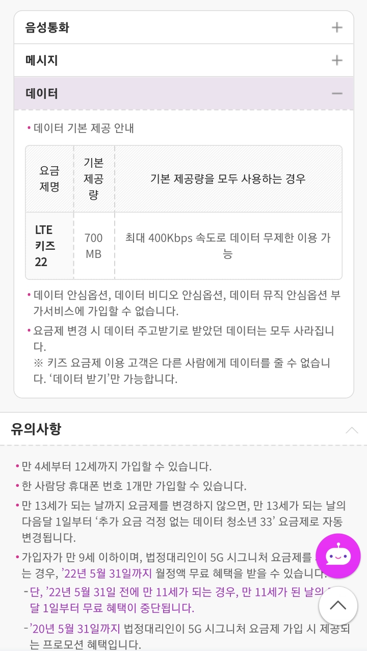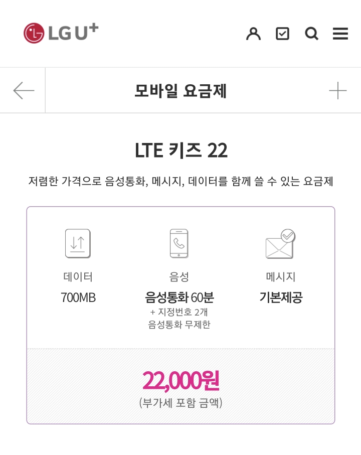 1달에 22000원짜리 유플러스 lte 키즈 22요금제인데..