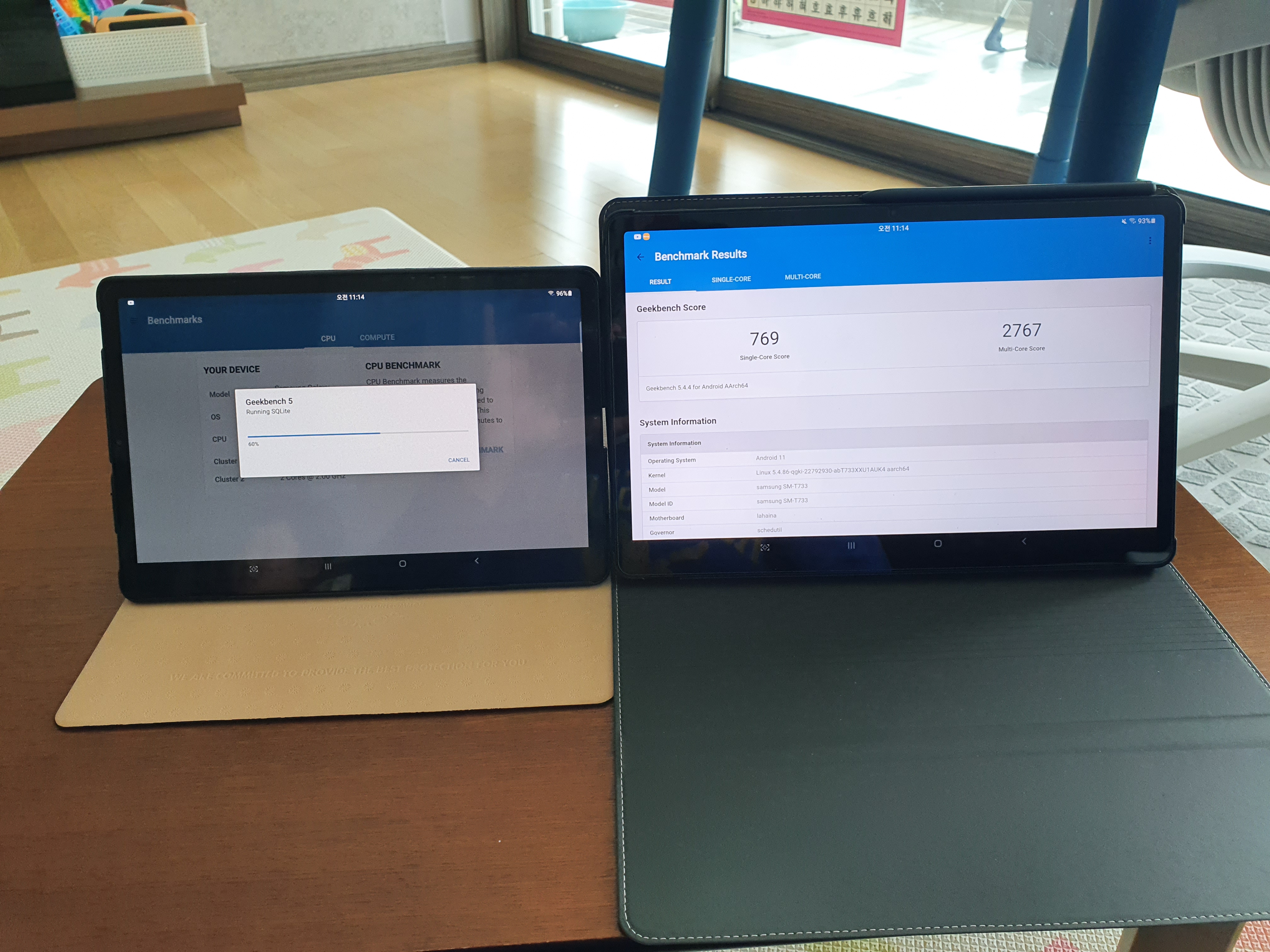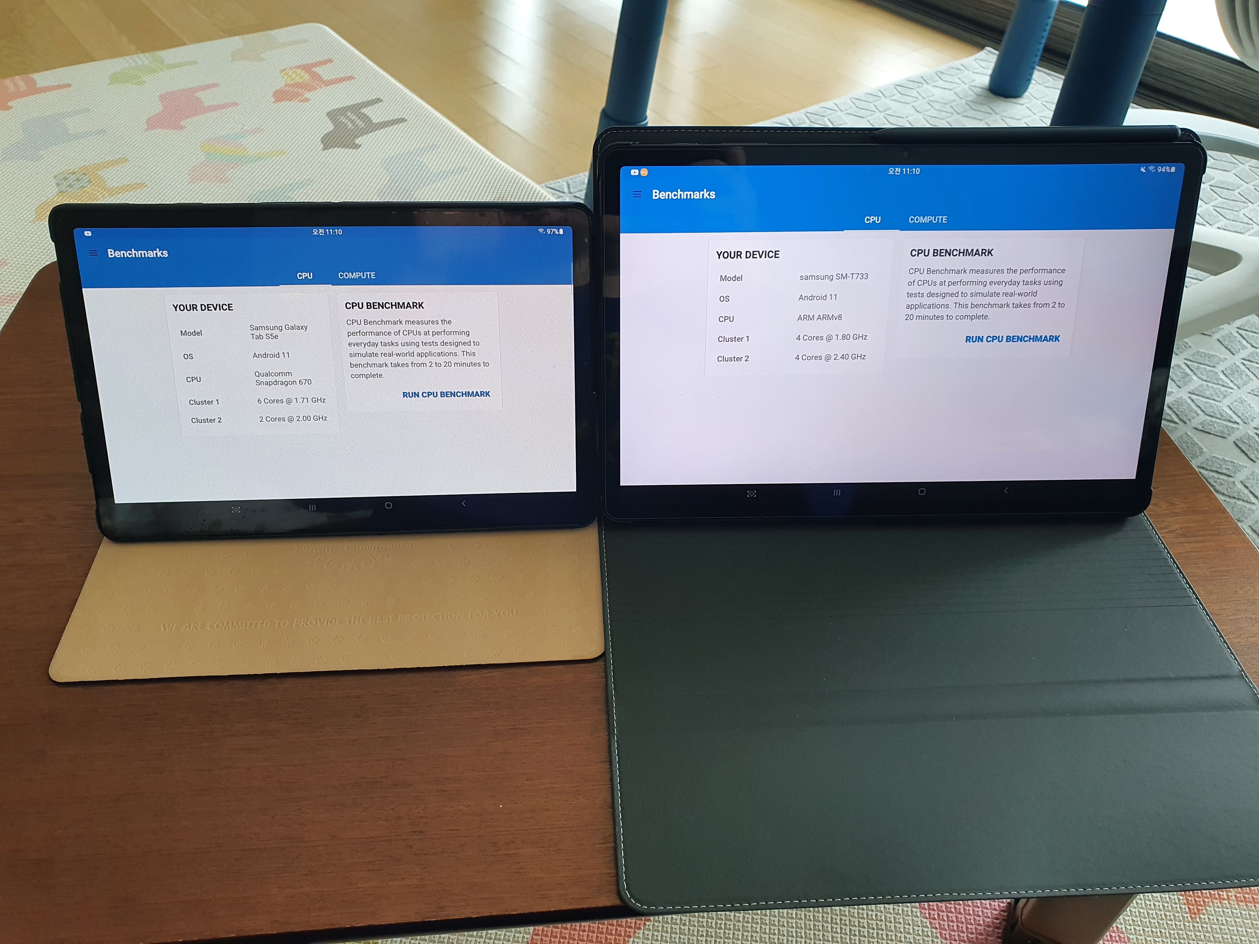 이상으로 갤럭시탭s5e 갤럭시탭 s7fe 액정비교 및 긱벤치 5 점수비교를 해봤습니다.