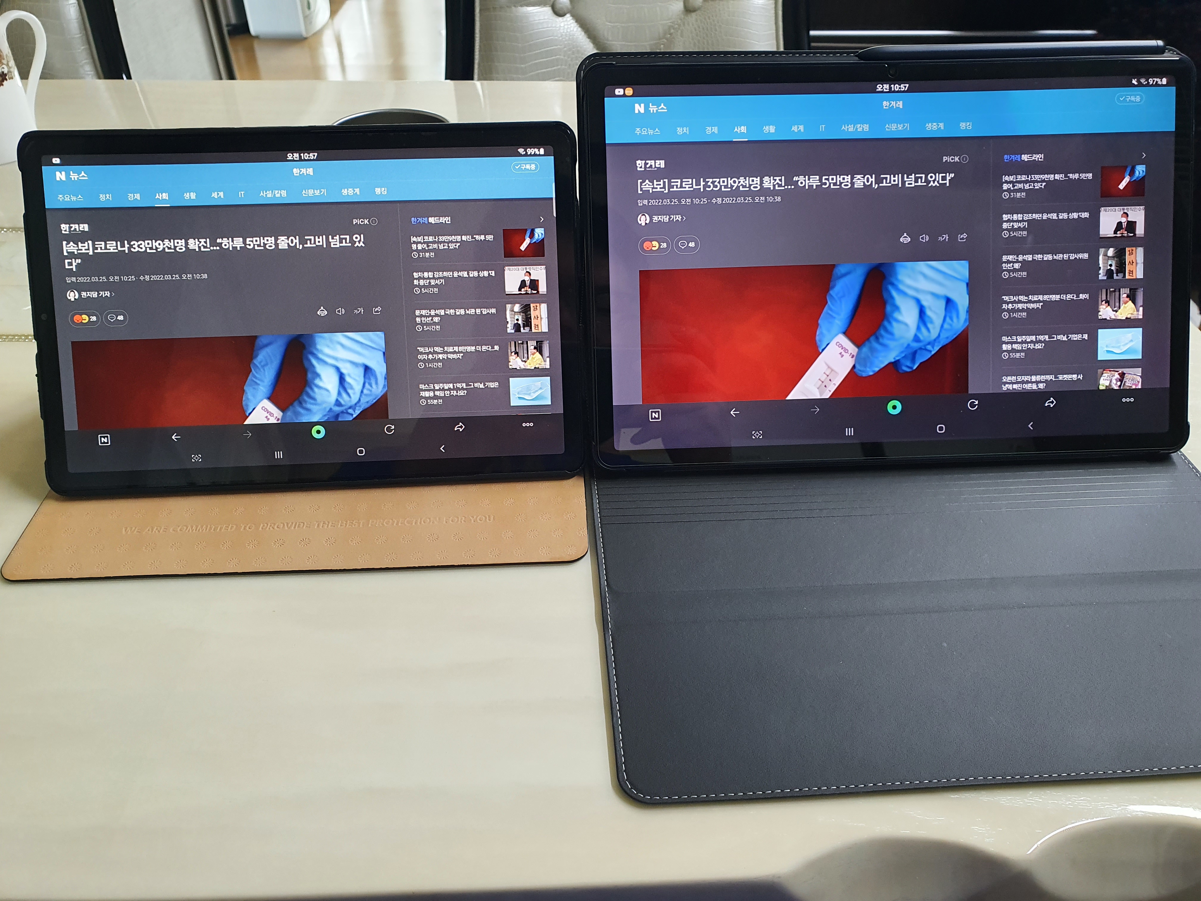 그러면서 집에 있는 갤럭시 탭 2대로 화면을 비교해 보려고 영상을 올려봅니다.