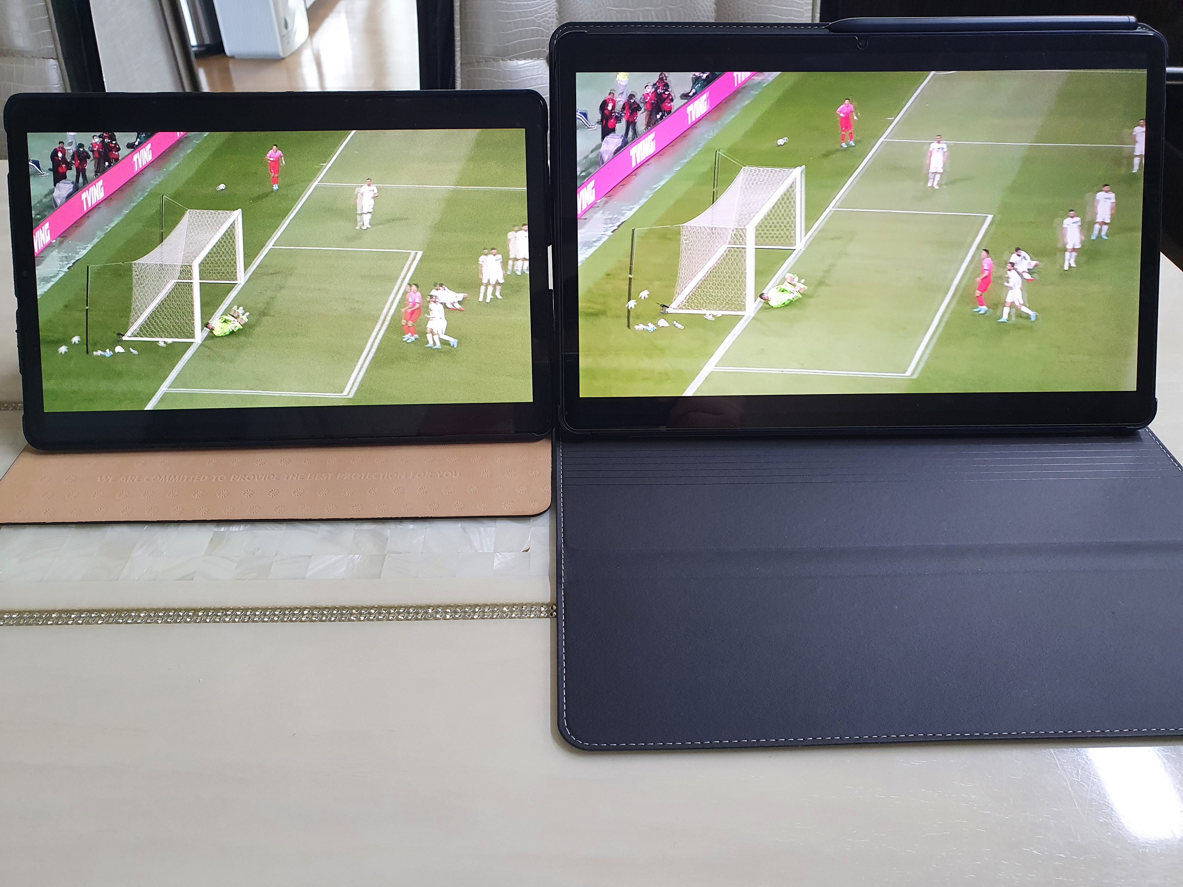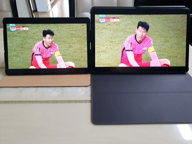 그리고 아래 사진은 이란 대한민국 축구 대표 경기 영상을 틀어봤는데.. 확실히 영상 화질은 s5e 모델이 훨~ 씬~ 영상감이 더 좋습니다.