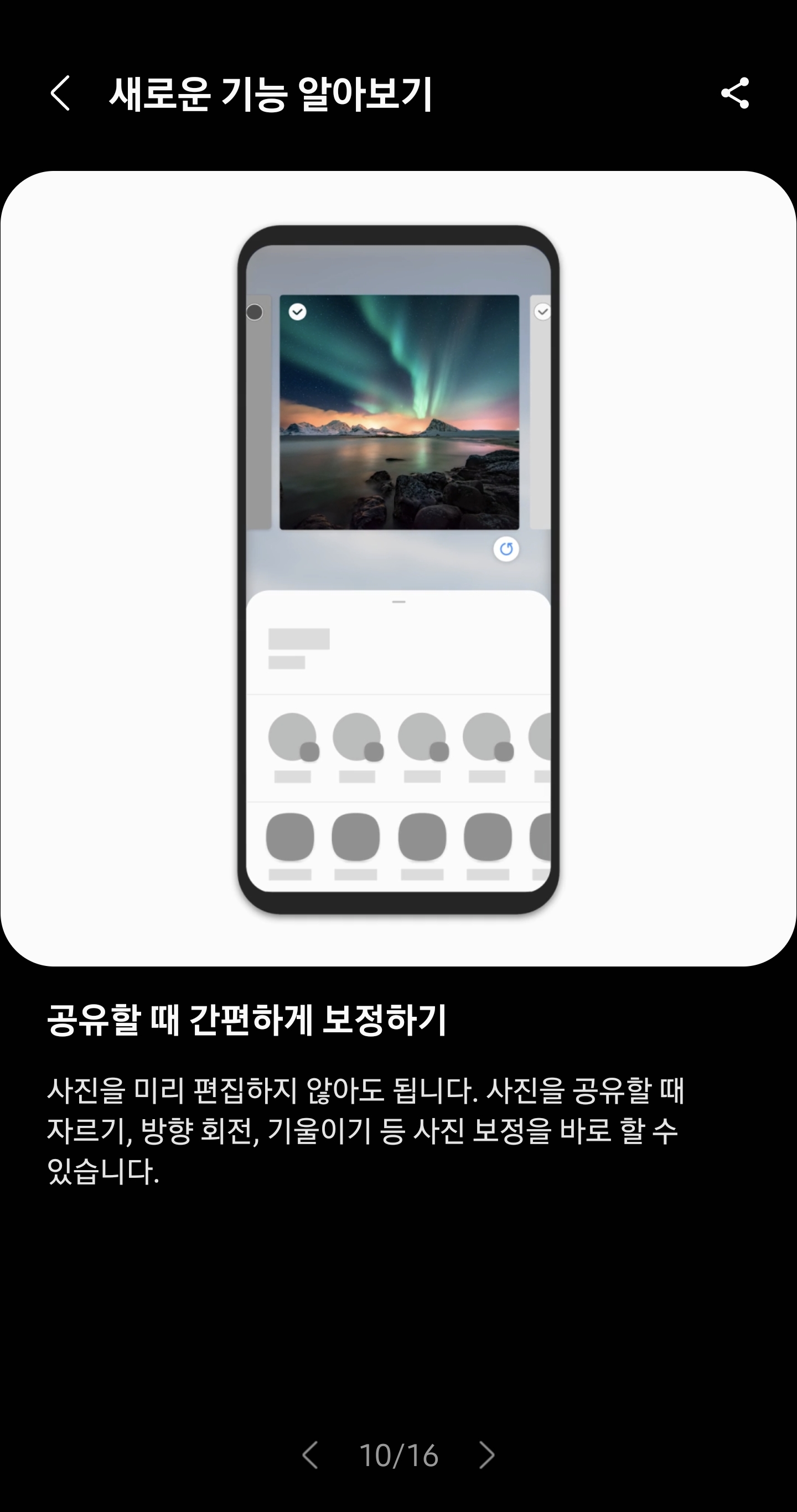 10. 사진 공유시 간편하게 편집을 할수 있음.