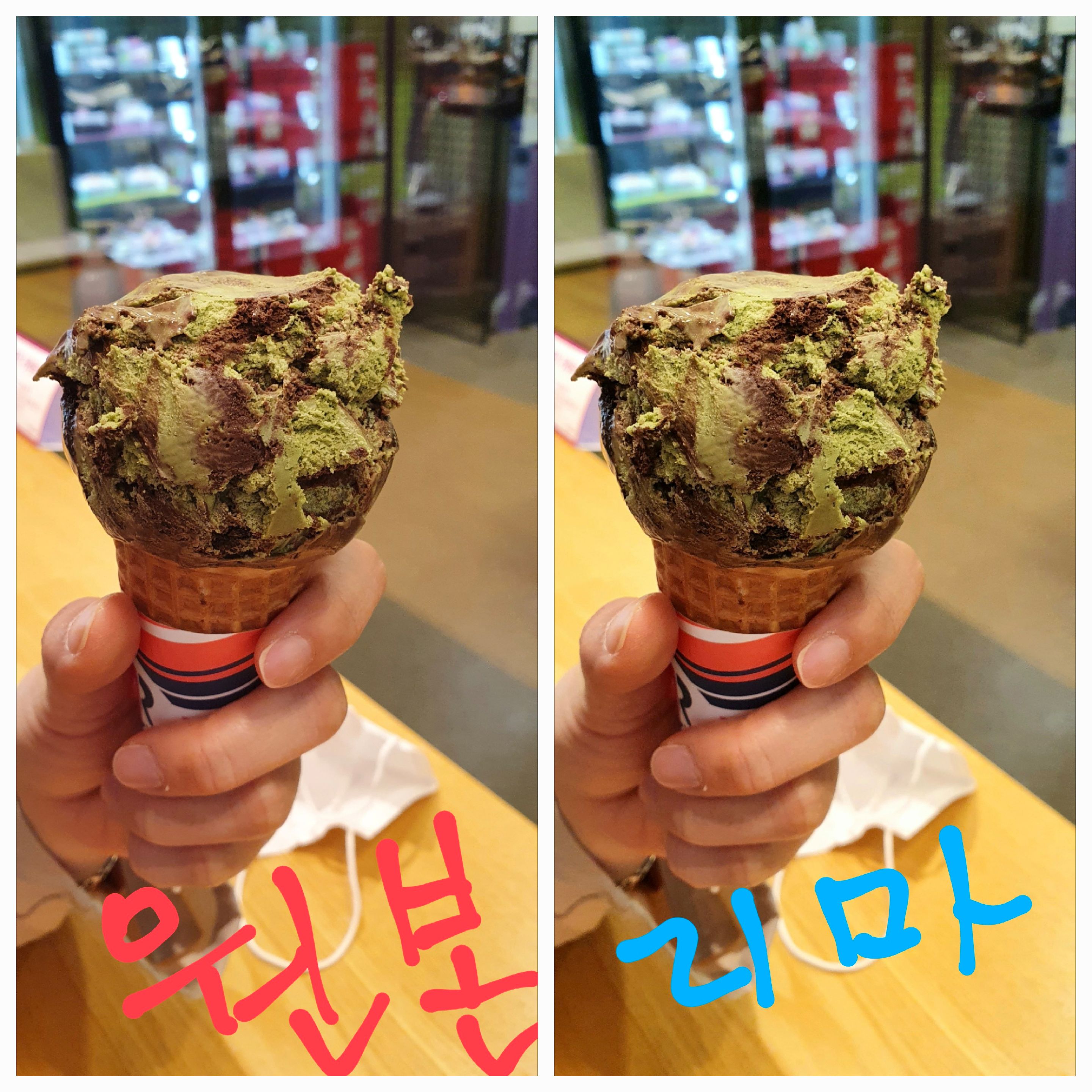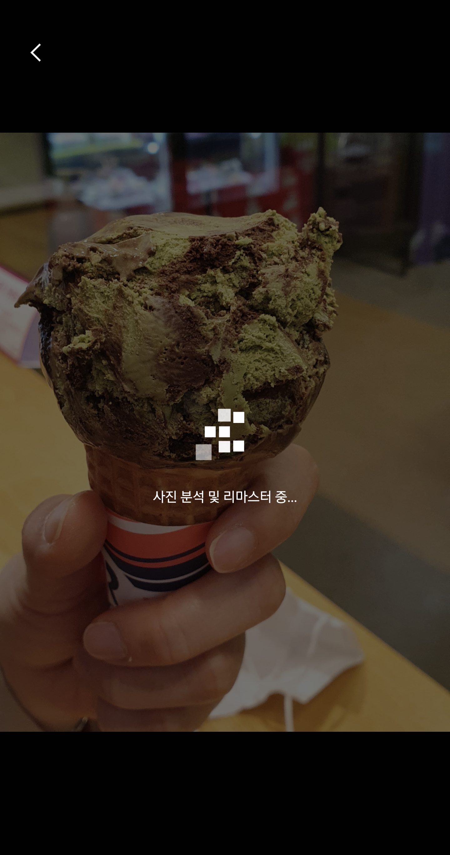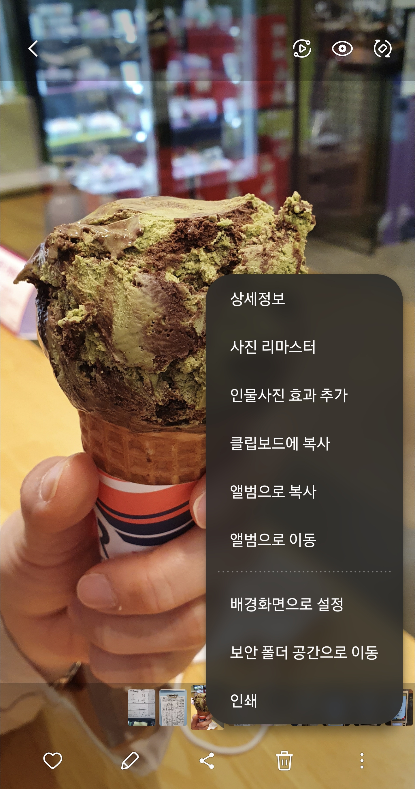 아래 사진은 갤러리앱 사진리마스터 기능으로 탄생한 초코나무숲 아이스크림 사진이다.