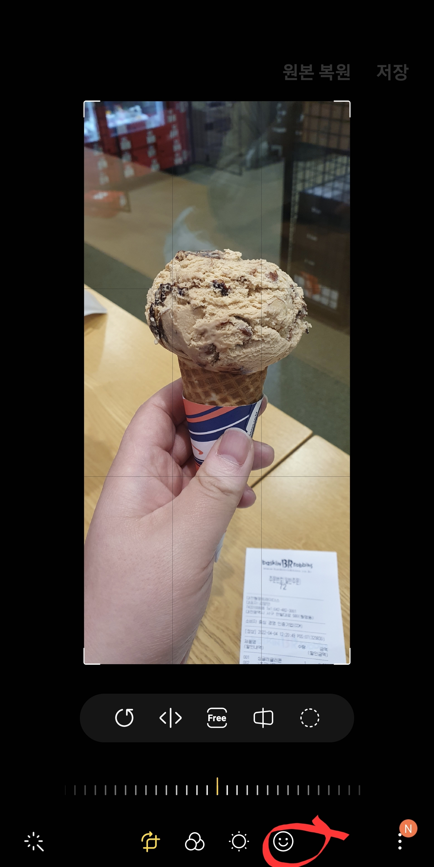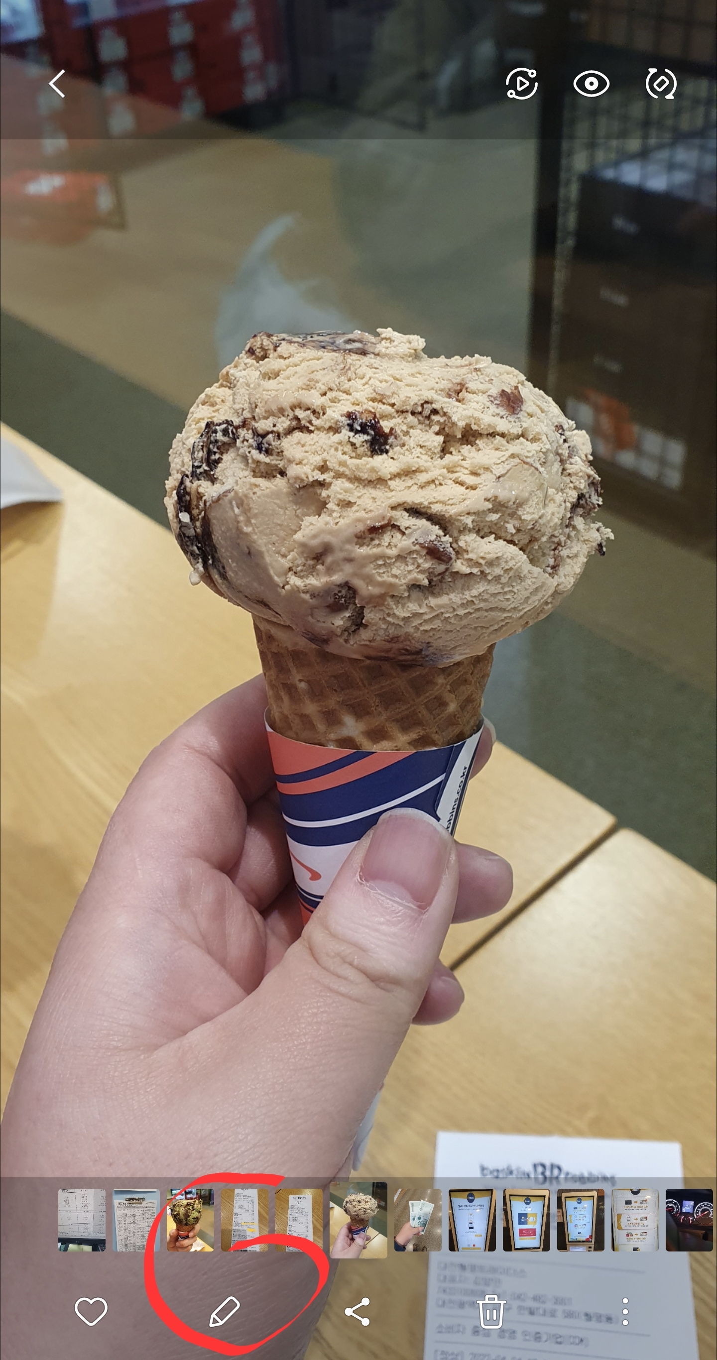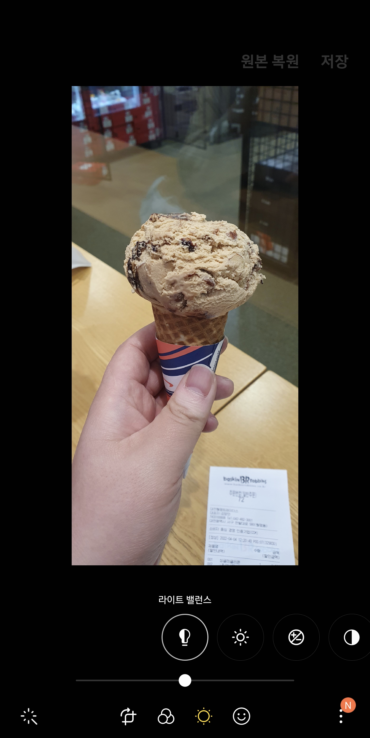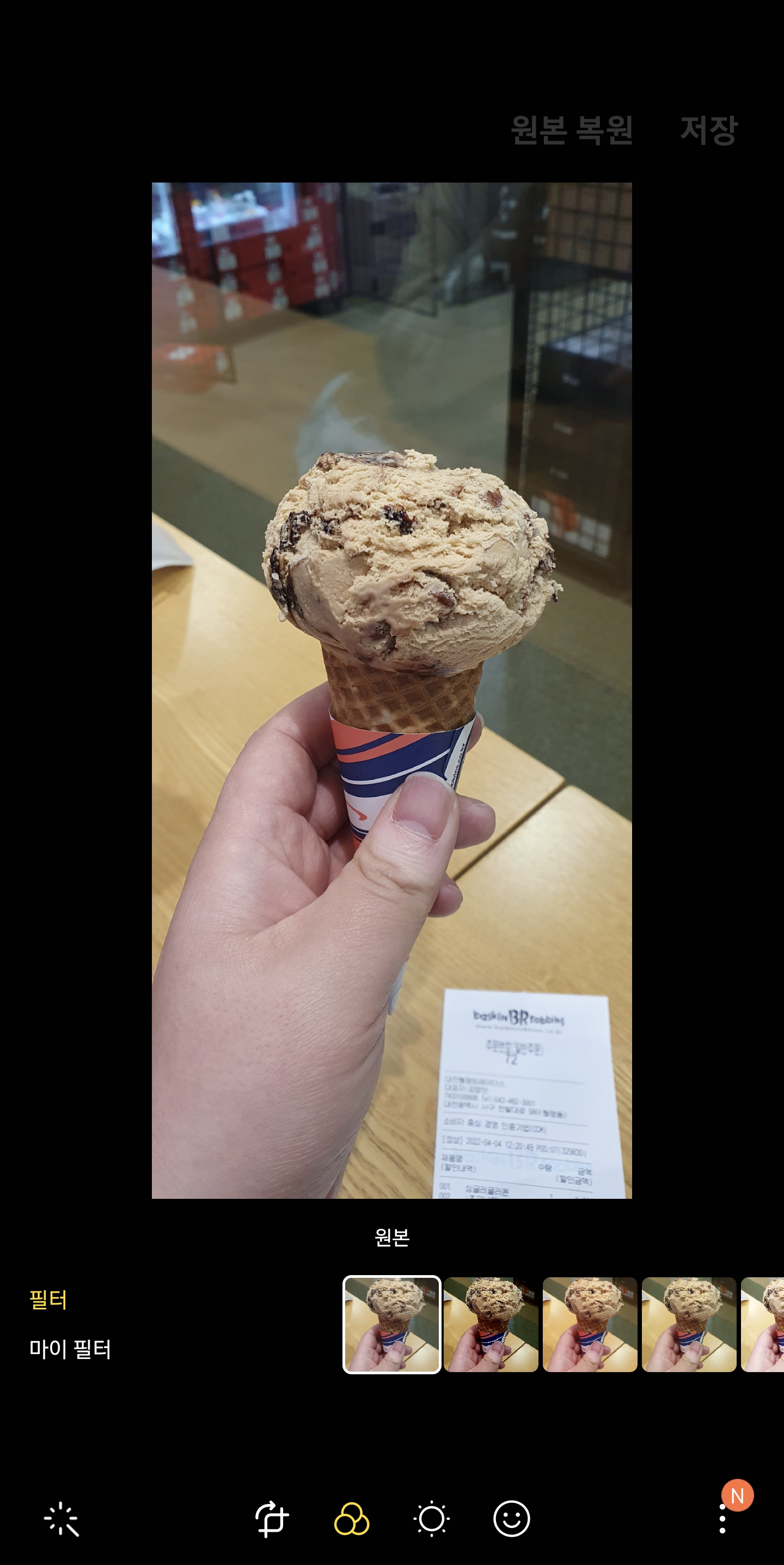 아래 사진은 갤러리앱 사진리마스터 기능으로 탄생한 초코나무숲 아이스크림 사진이다.