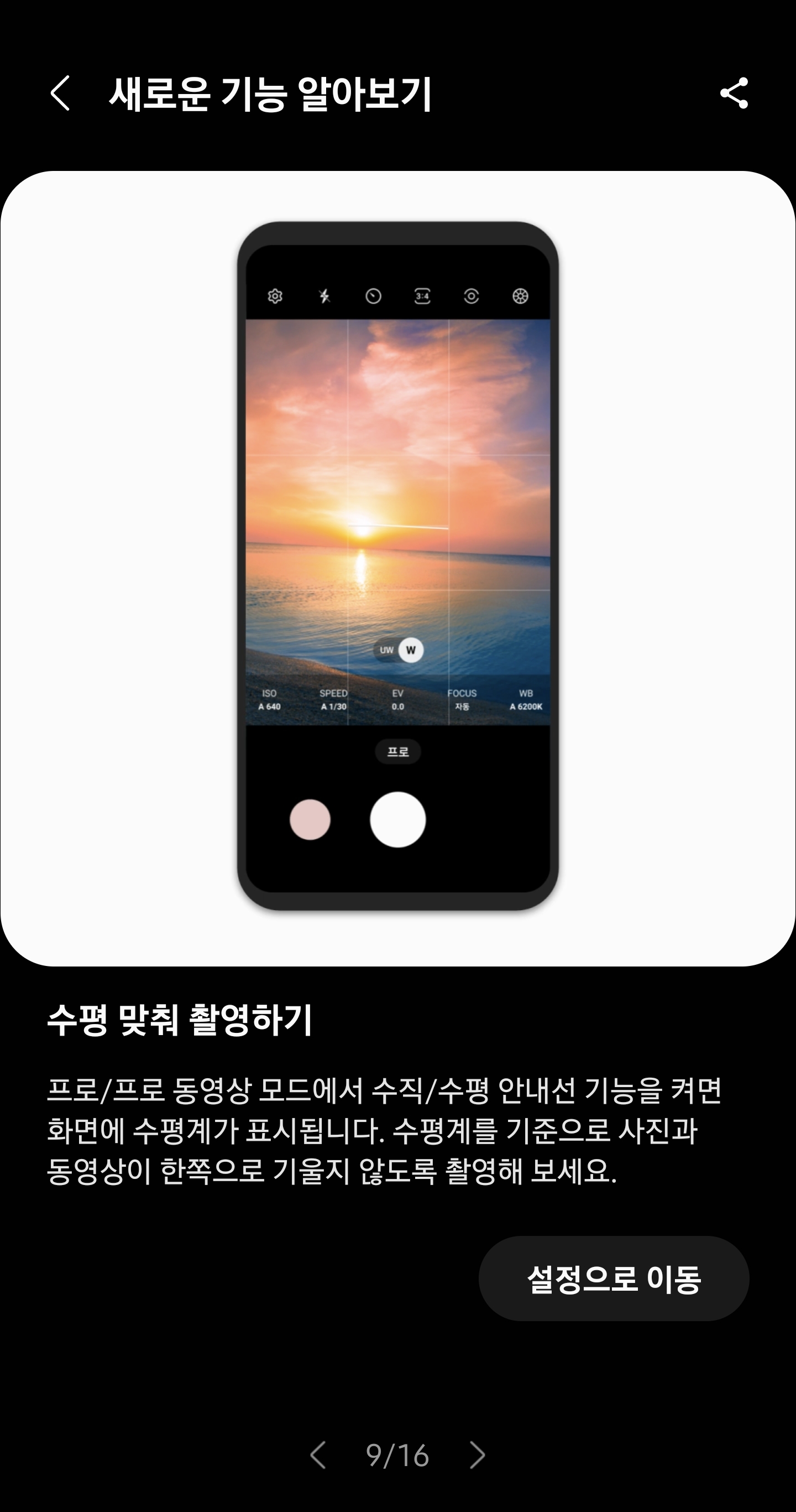 9. 사진이나 동영상 촬영시 수평선을 안내하여 기울어지지 않은 상태에서 사진과 동영상 촬영가능