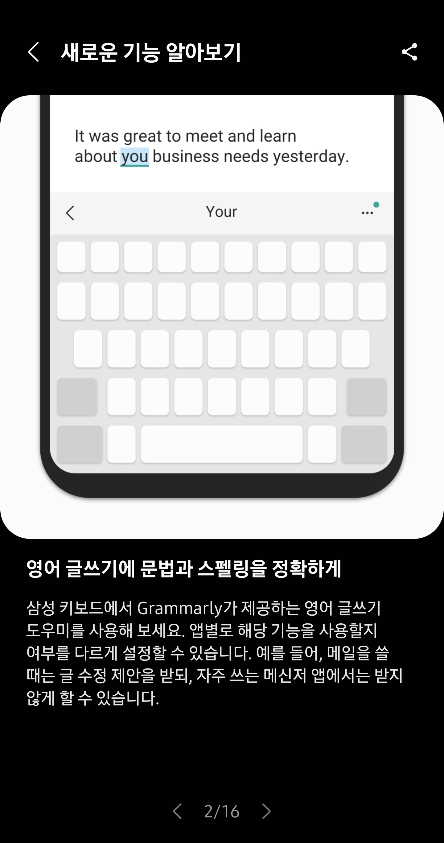 1. 삼성키보드 영어로 쓸때, 문법 기능이 강화된다!