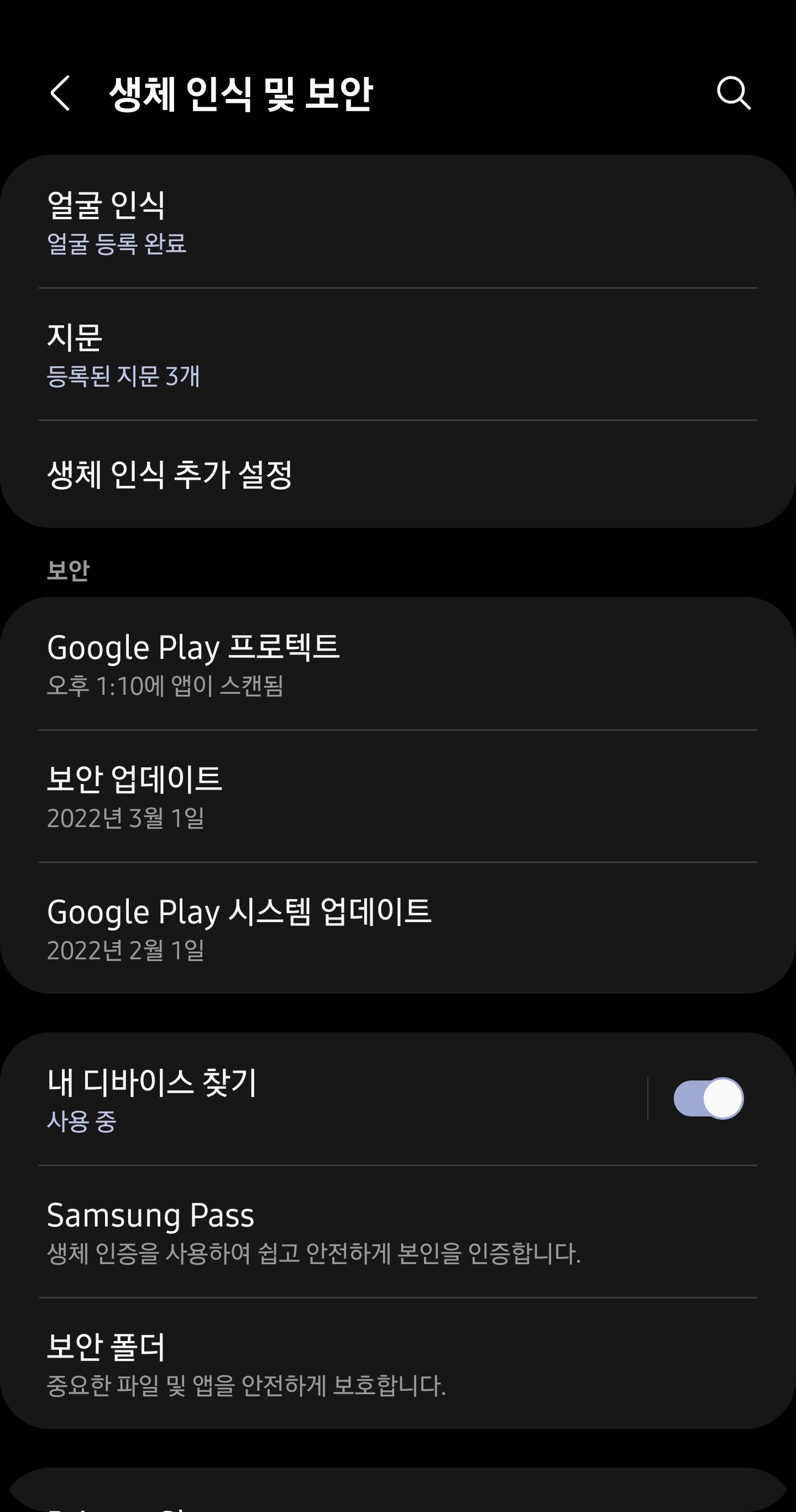 지문인식 보안도 업데이트 되기도 했고,