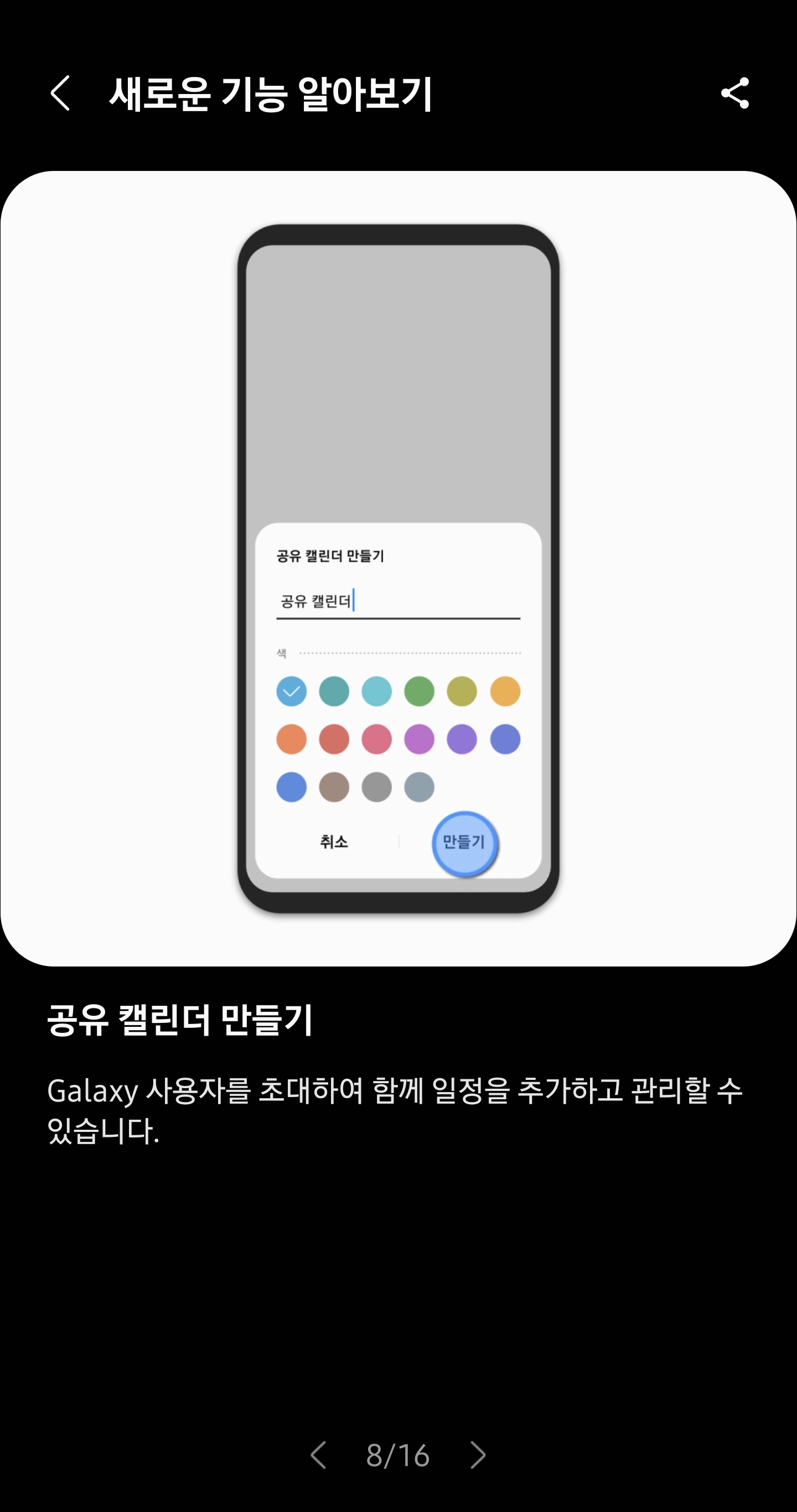 7. 캘린더 앱에서 일정을 서로 공유 할수 있는 공유캘린더 기능이 추가 되어 여러명이서 캘린더를 공유할수 가 있음!