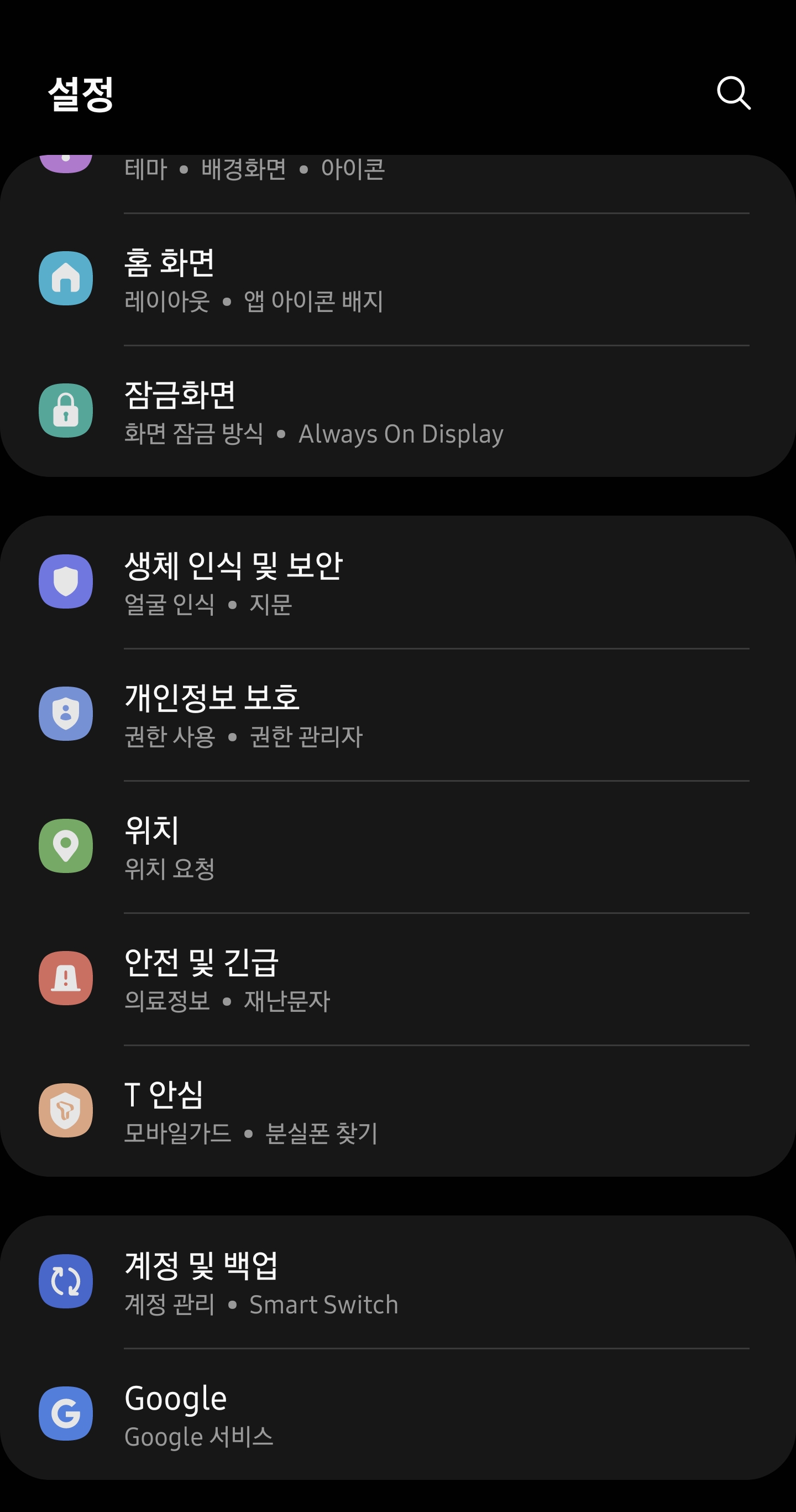 1. 설정에 들어가서 "생체인식 및 보안"으로 들어갑니다.