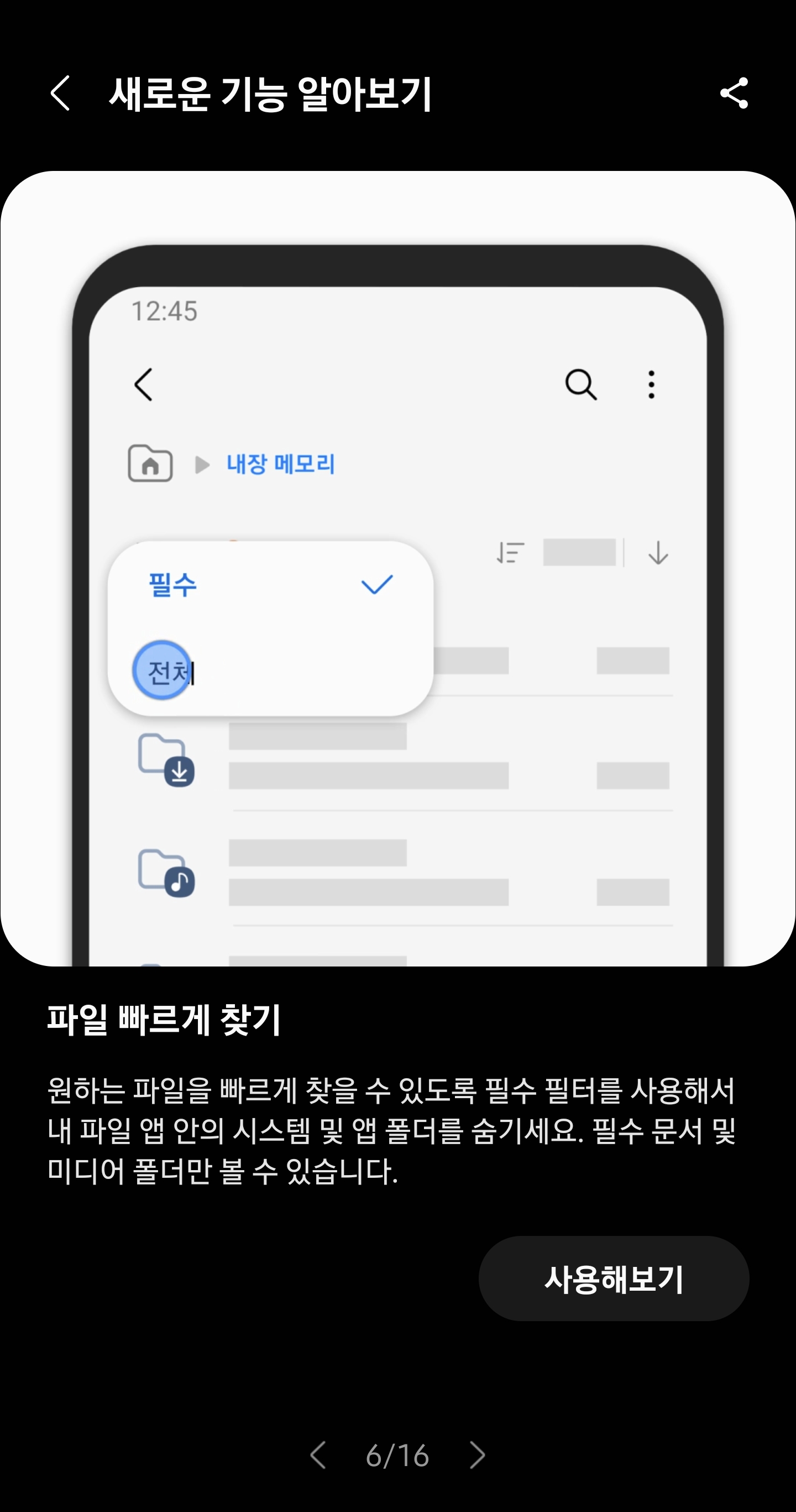 5. 내파일 어플에서 검색기능 강화되어 보다 쉽게 파일을 찾을수 있음.