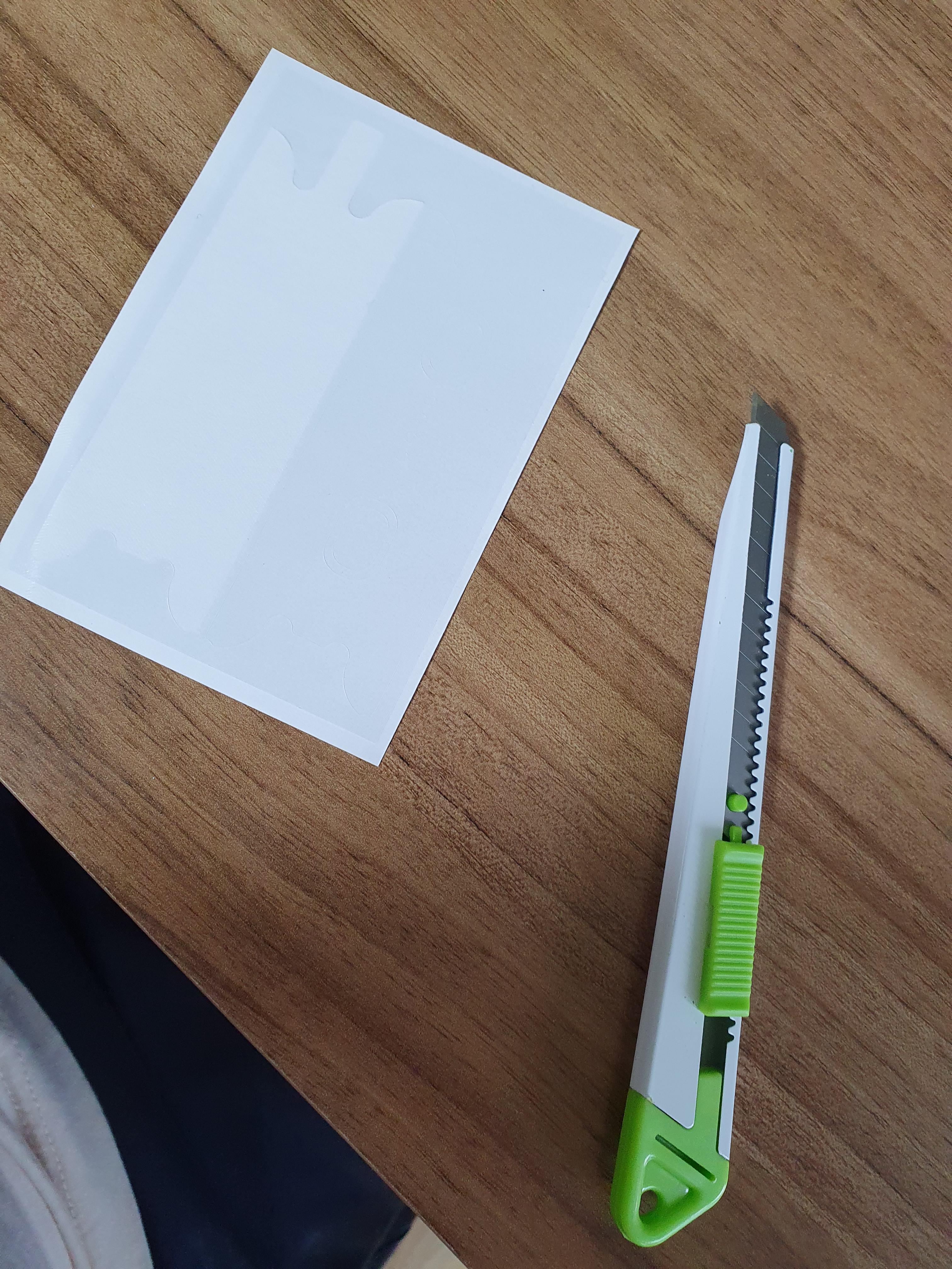 구멍이 작아서 커터칼로 구멍스티커부분을 띄어내야합니다.