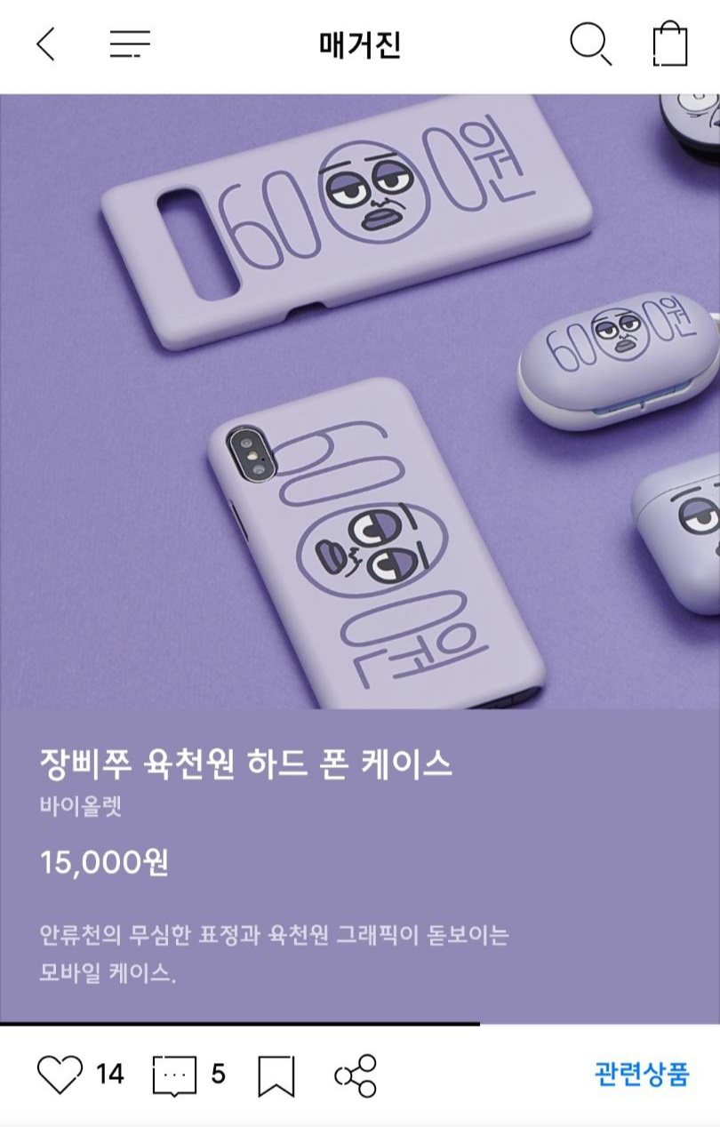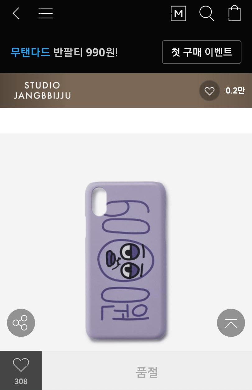 제품분류 : 디지털/테크 > 케이스/슬리브 브랜드 : 장삐쭈(JANGBBIJJU) 제품번호 : 1442778 제품 : 장삐쭈 육천원 하드 폰케이스 - 15,000 원산지 : 대한민국