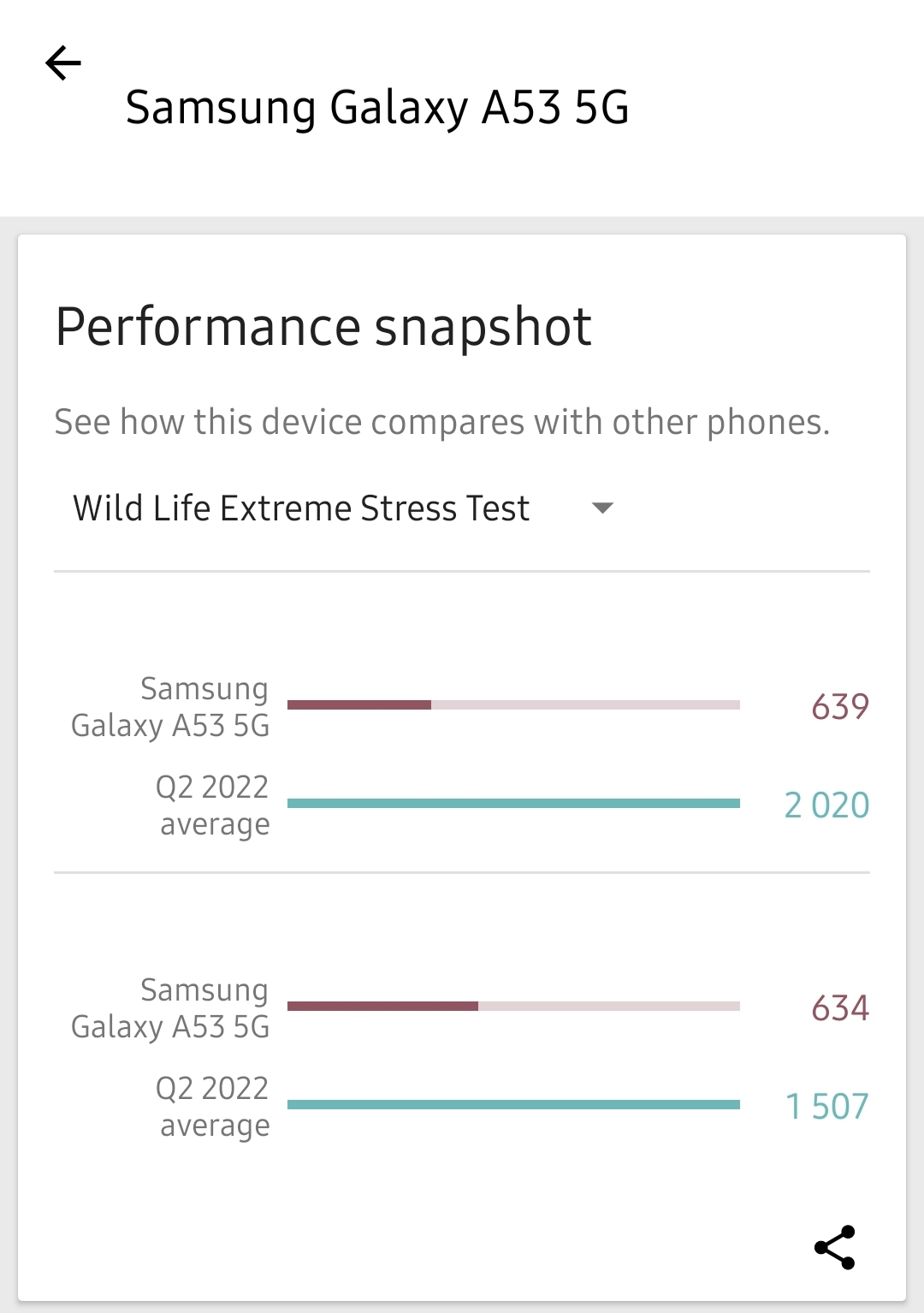 갤럭시 A53의 3D mark extream stress test 점수를 볼께요.