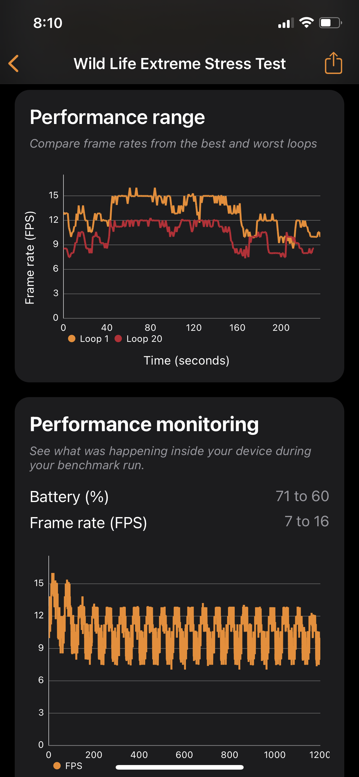 이번엔 아이폰12의 3d마크 와일드라이프 익스트림 스트레스 테스트를 돌려봤는데..