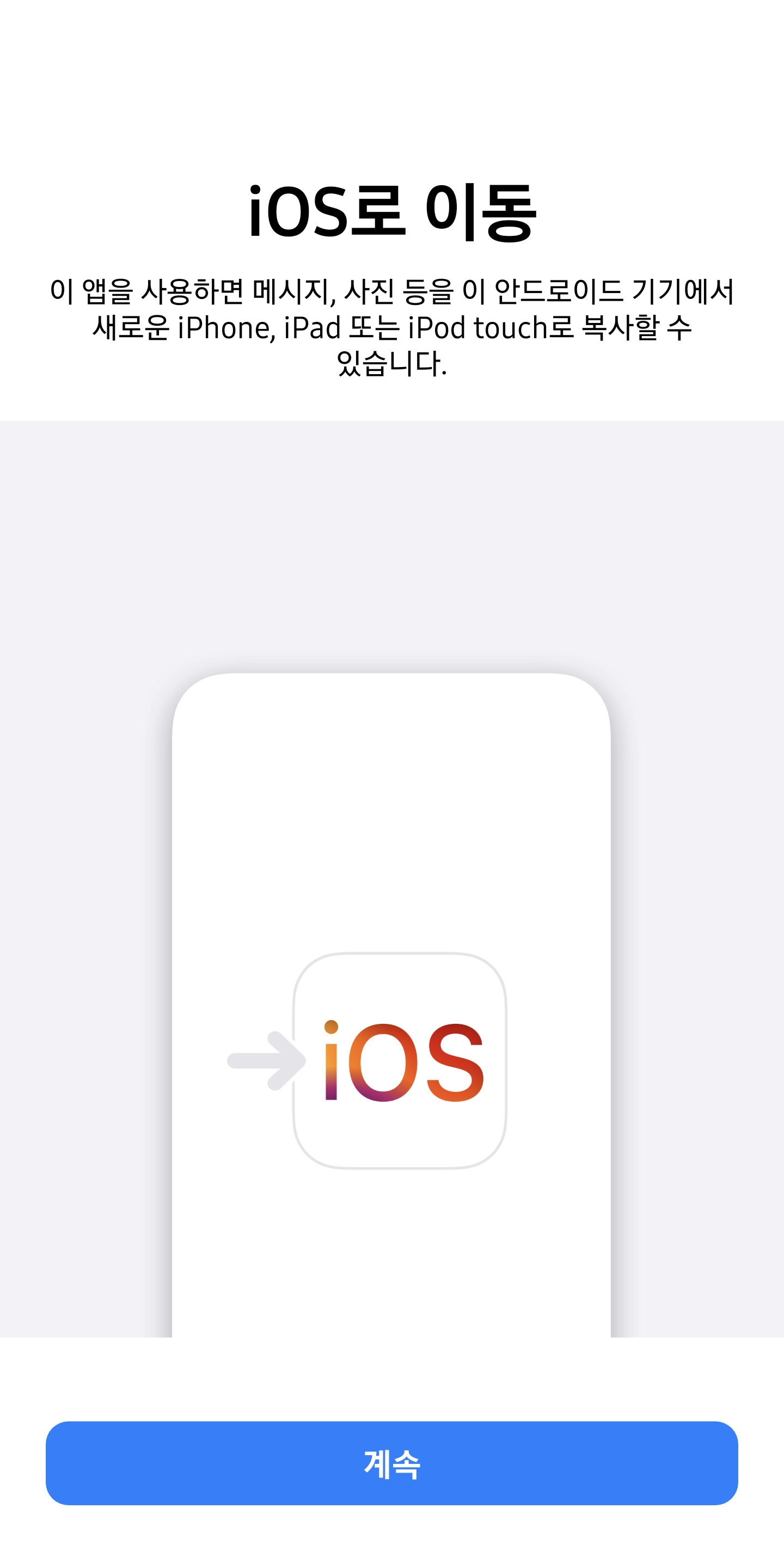 1. 갤럭시 플레이 스토어에서 "Move to ios" 어플리 케이션을 검색하고 선택해서 설치를 합니다.