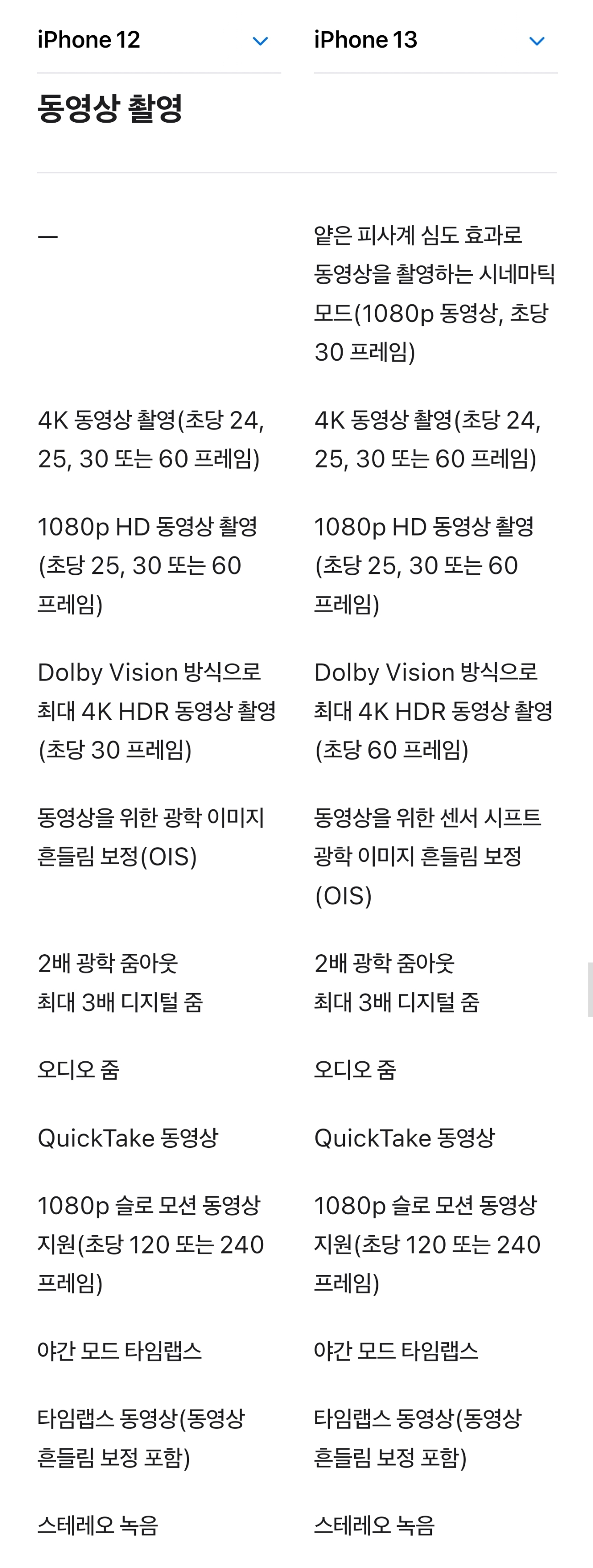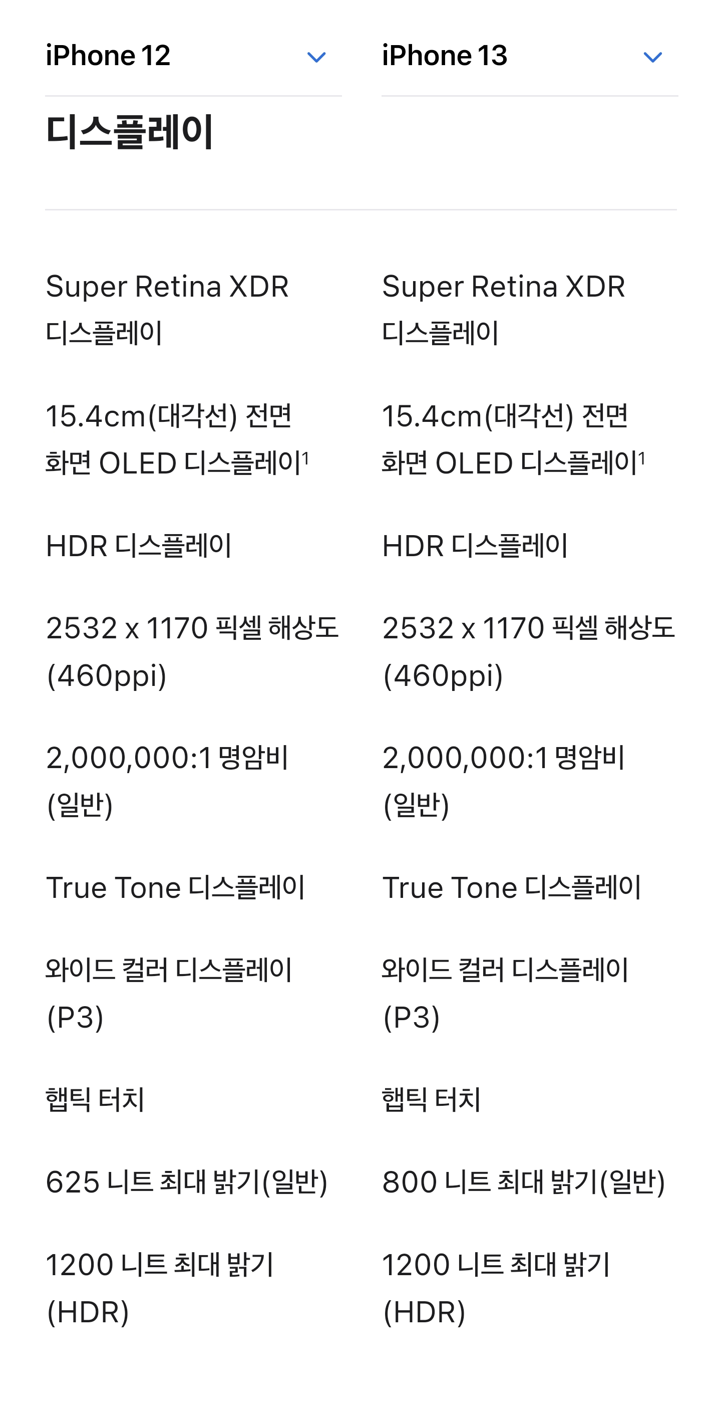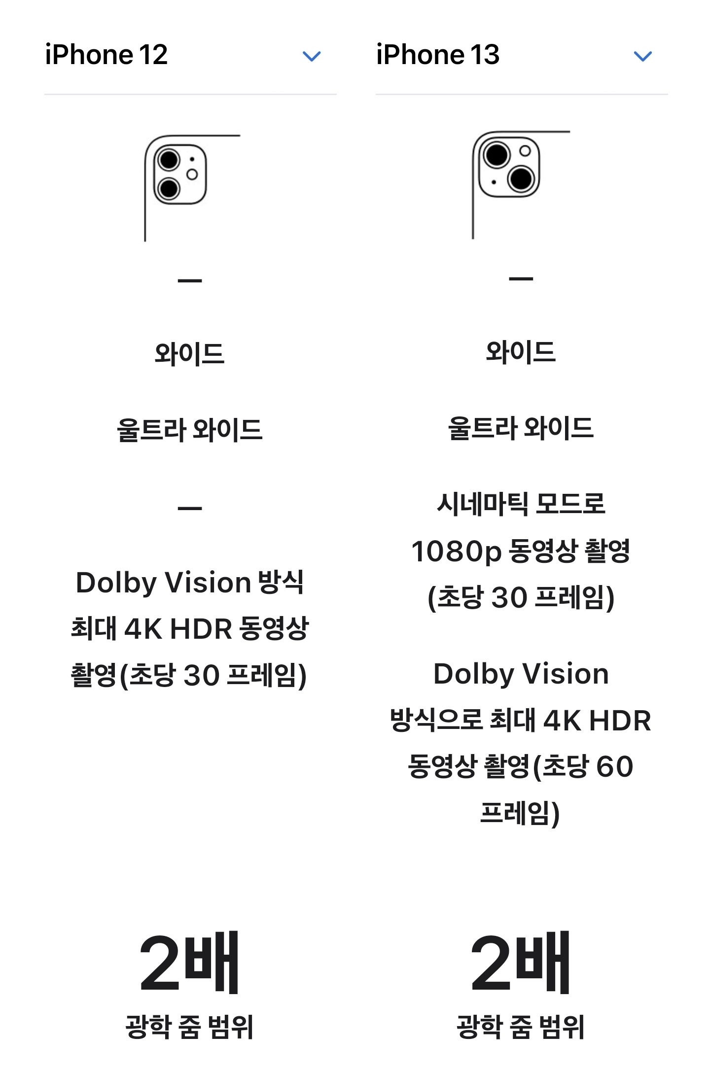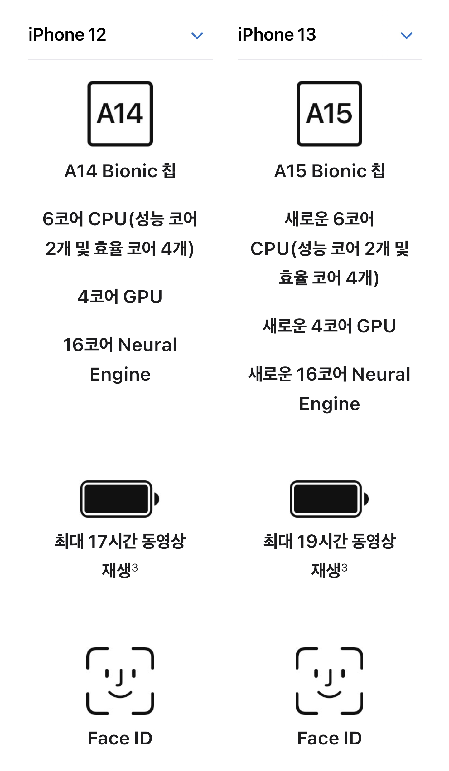 아이폰12 아이폰13 스펙비교