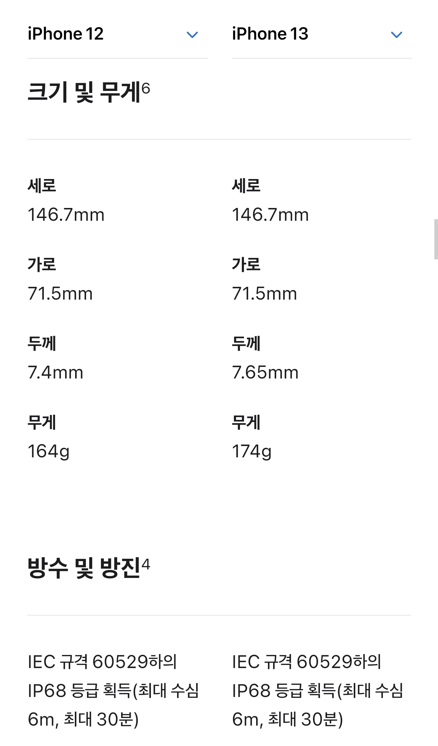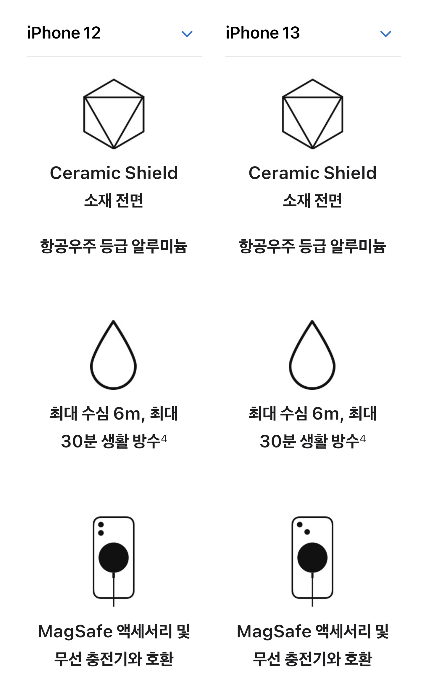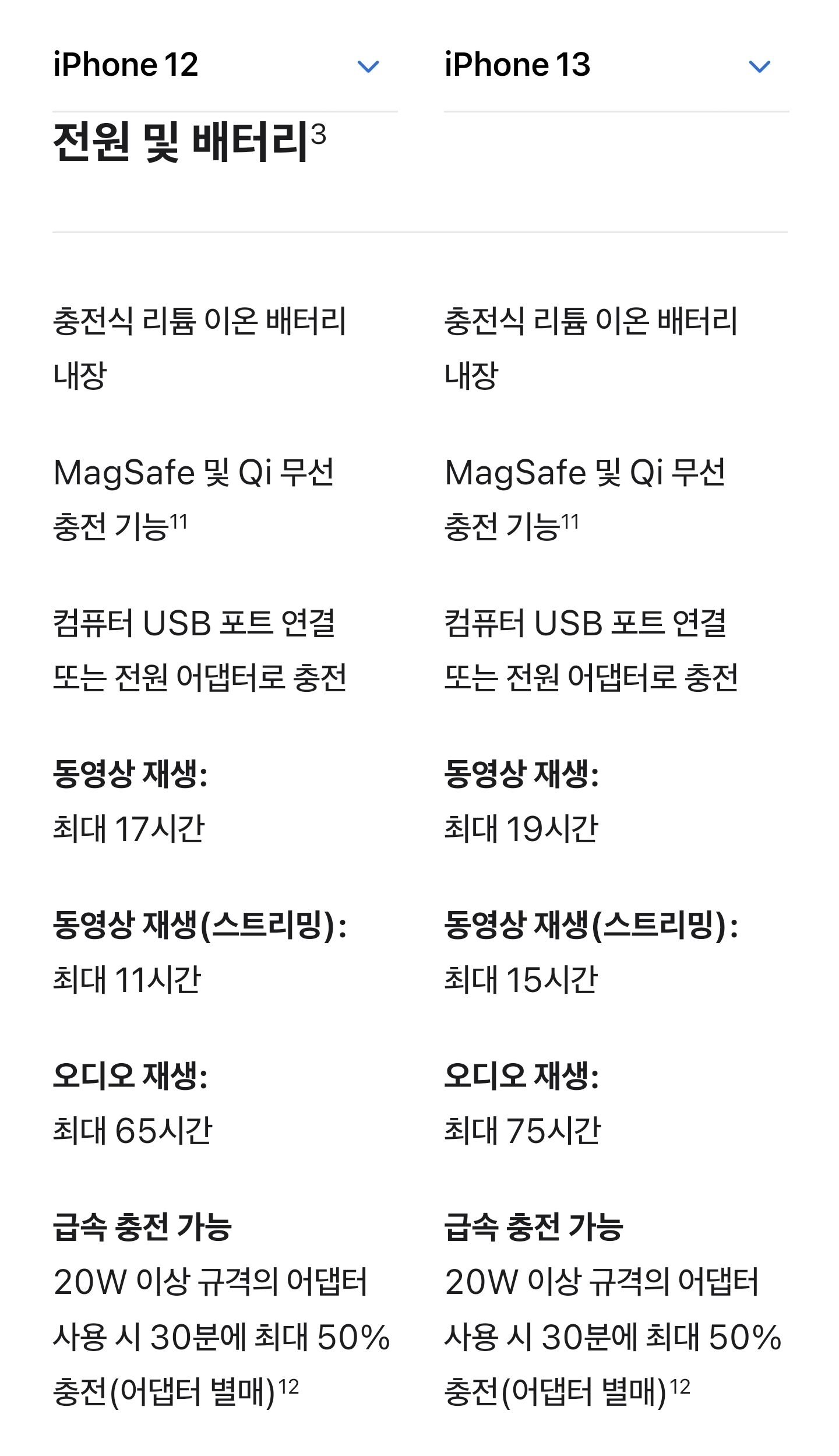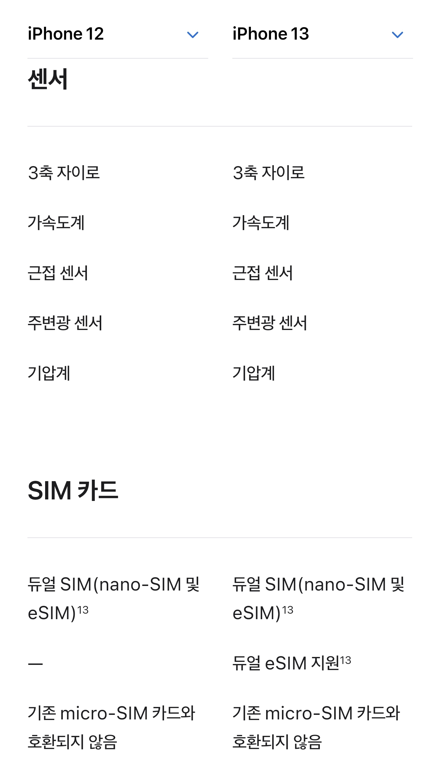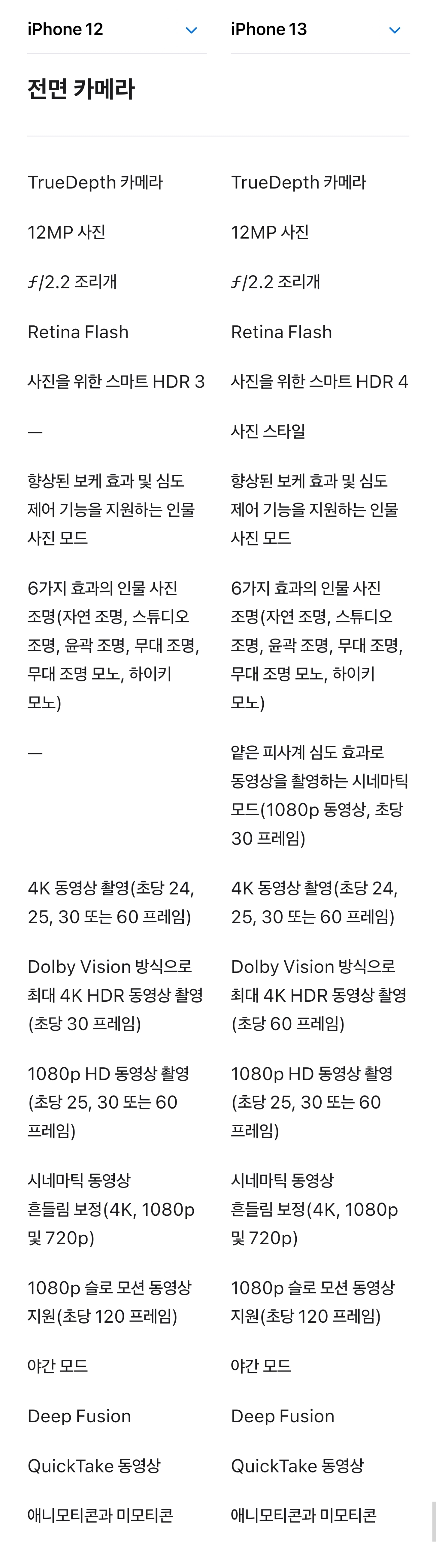 아이폰12 아이폰13 스펙비교