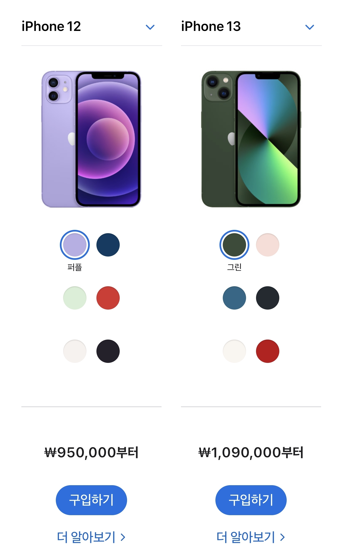 색깔 : 미드나이트, 스타라이트기, 블루, 핑크, 레드, 그린