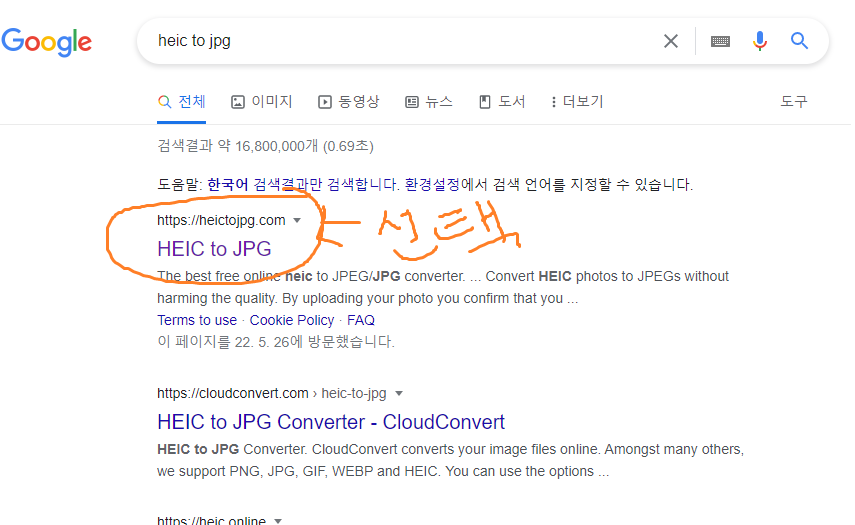 그럼 검색된것 중에선 heictojpg.com 이라고 떠 있는 맨 위에 첫번째걸 선택합니다.