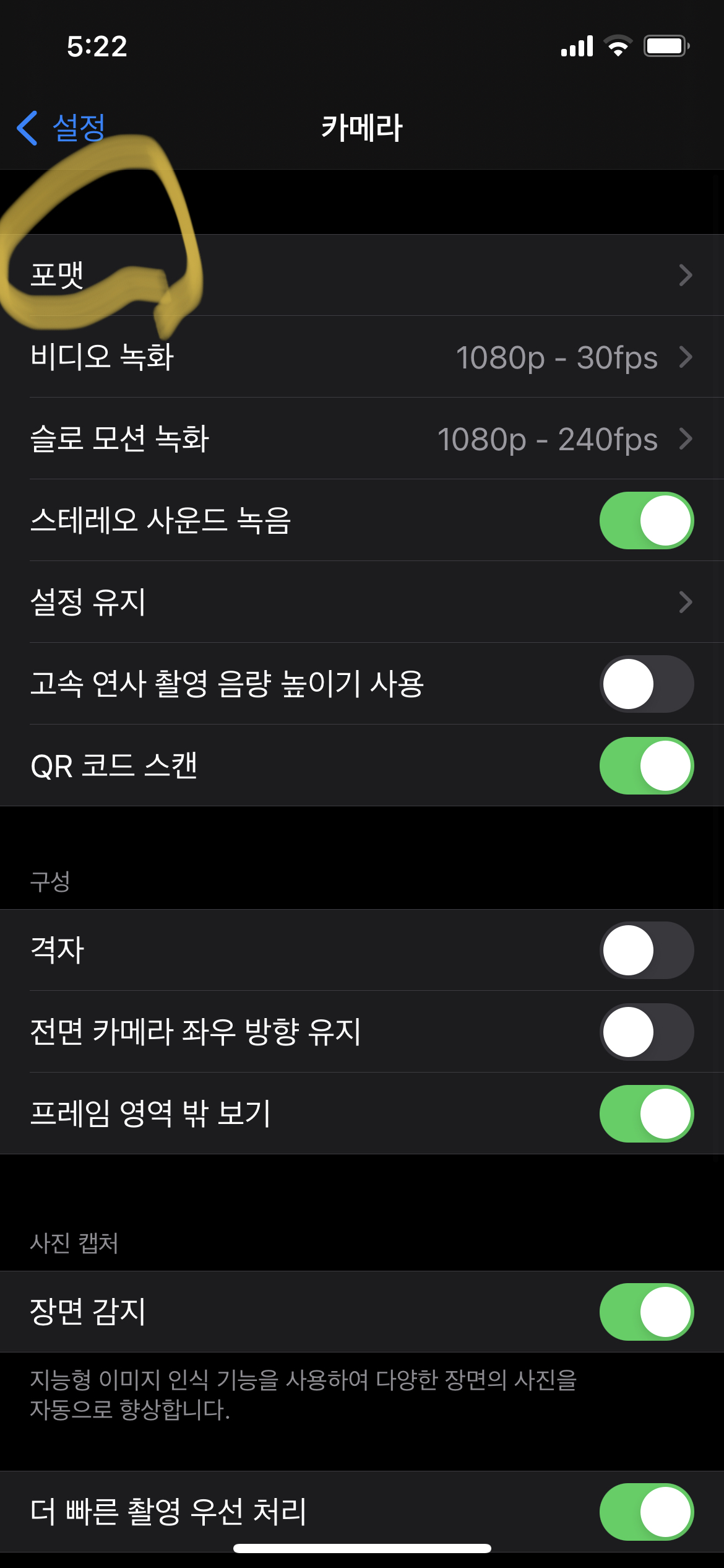 이렇게 하면 아이폰에 저장되는 사진은 전부 JPG로 저장되게 됩니다.