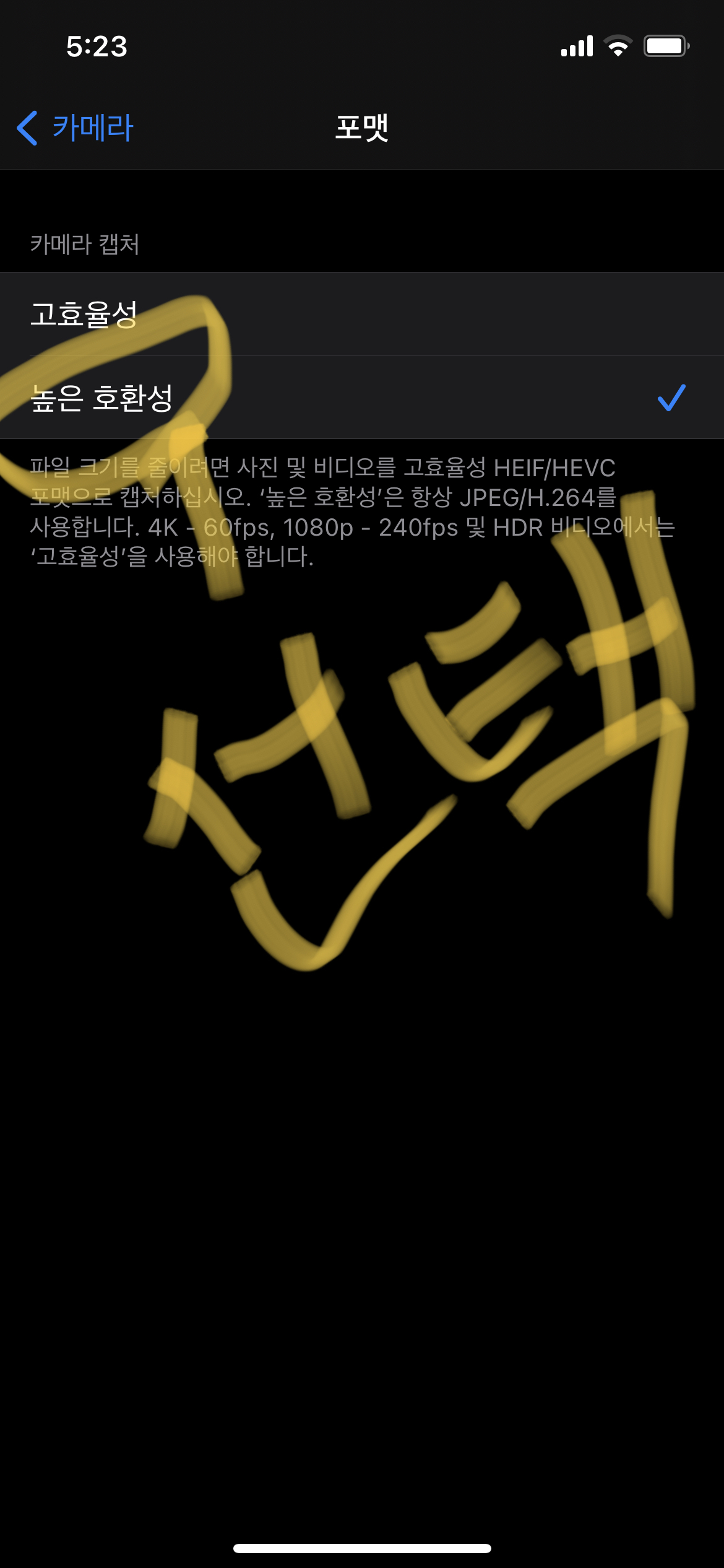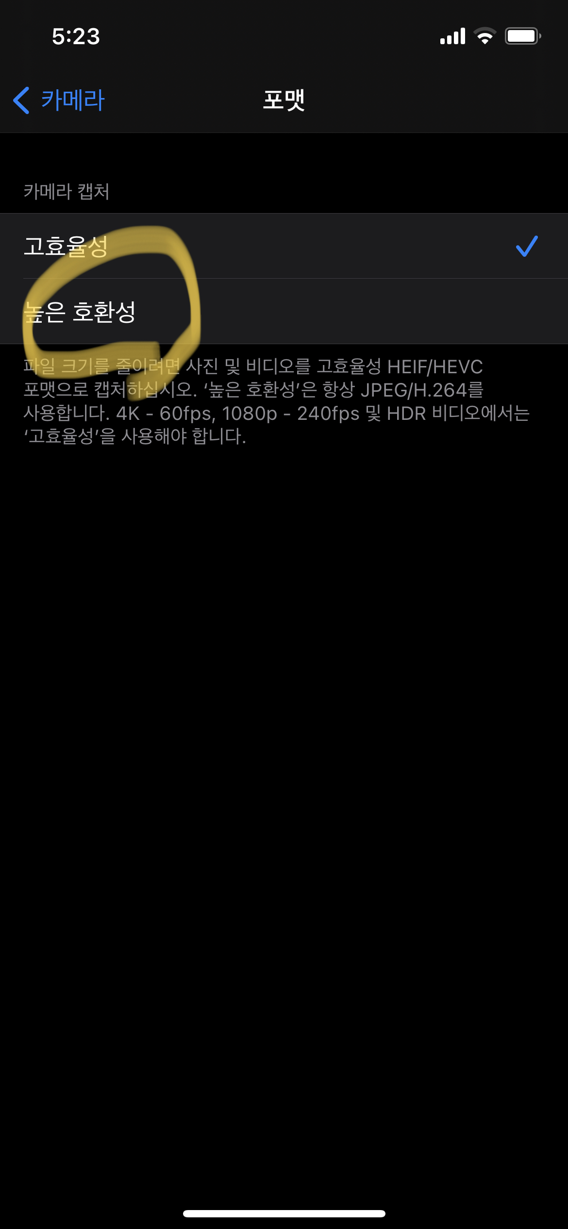 아이폰 용량이 부족하신 분들은 그냥 "고효율성(HEIC형식)" 으로 놓고 쓰시길 바랍니다.