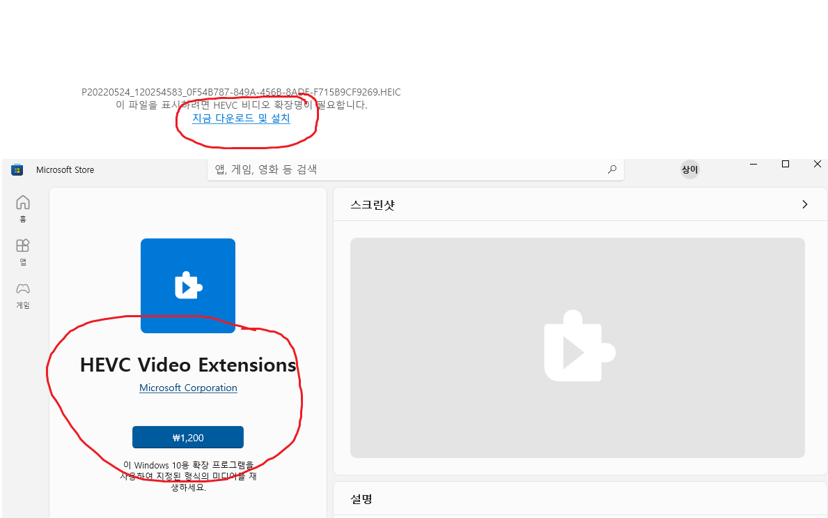 위 사진은 윈도우에서 heic 파일(동영상)을 실행시키면 저한테 코덱 다운 받은다고 삥을 뜯으려 하고 있습니다.