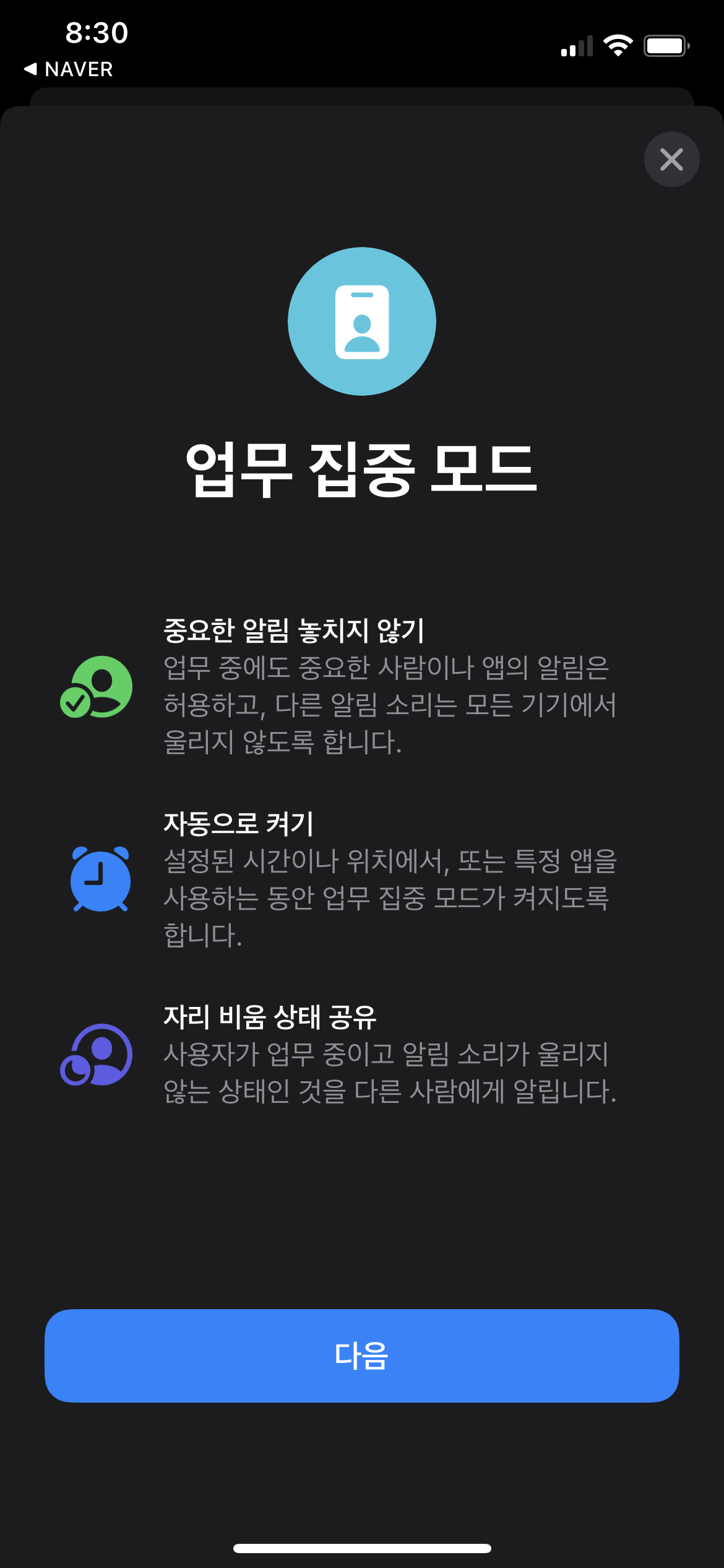 업무집중모드도 생기고