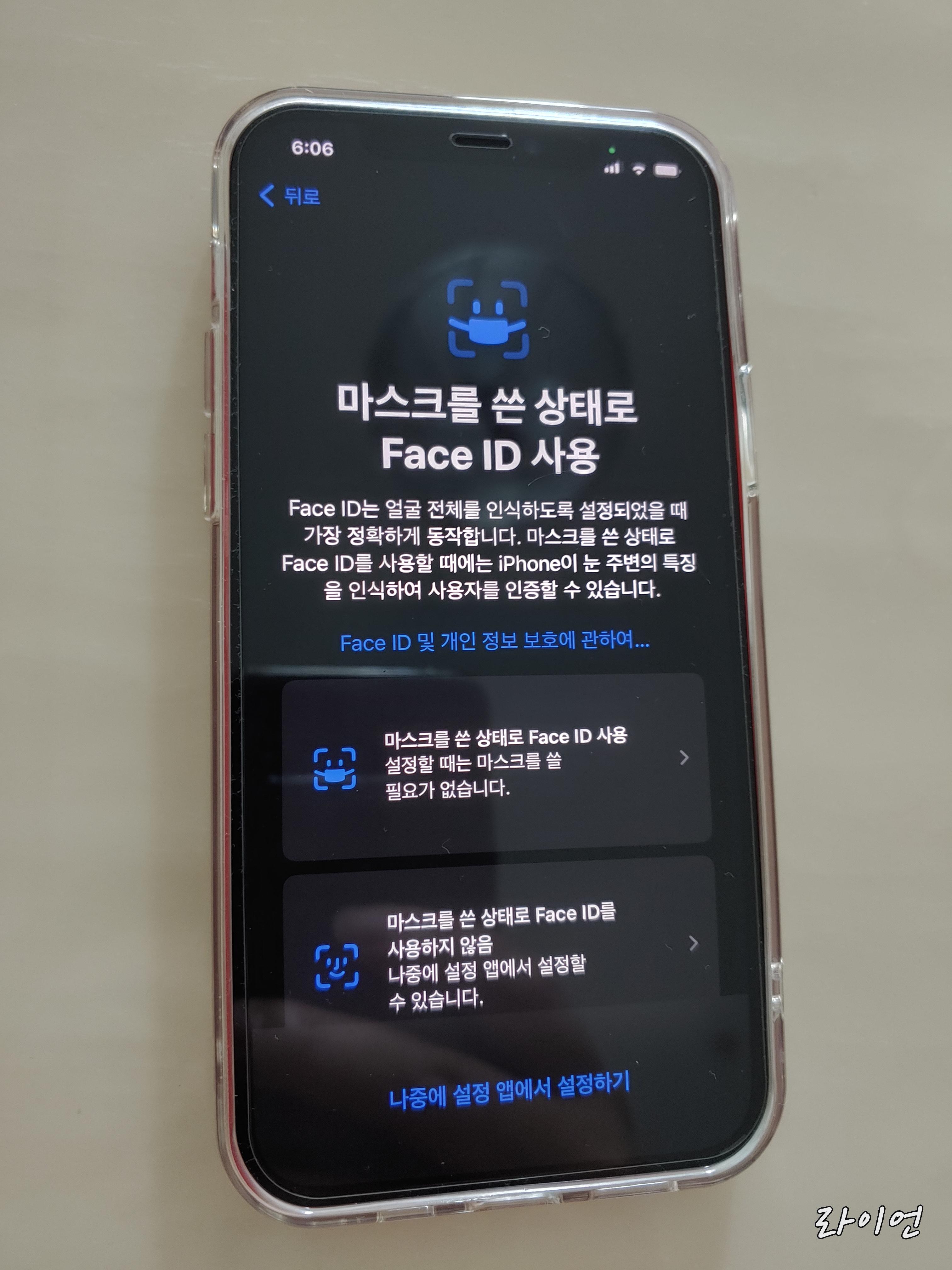 이젠 마스크를 낀상태에서도 페이스 아이디가 인식이 잘됩니다.