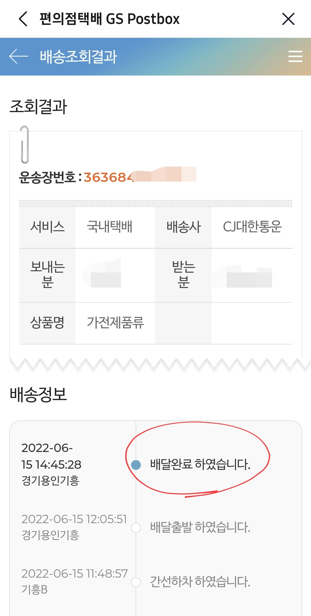 제가 물건배송을 6월 15일 오후 4시 9분에 배송이 완료되었기 때문에..