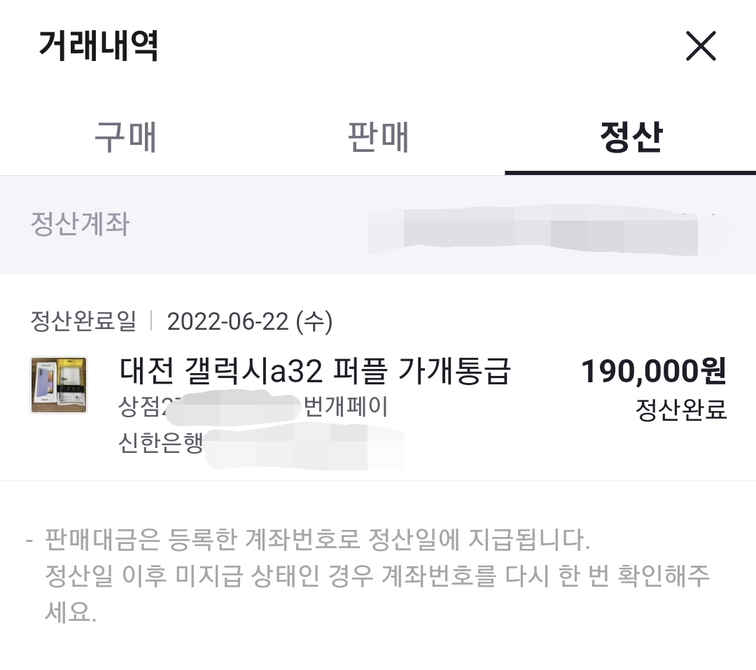 번개장터가 가지고 있는 구매금을 바로 제 통장에 입급이 되는 시스템입니다.