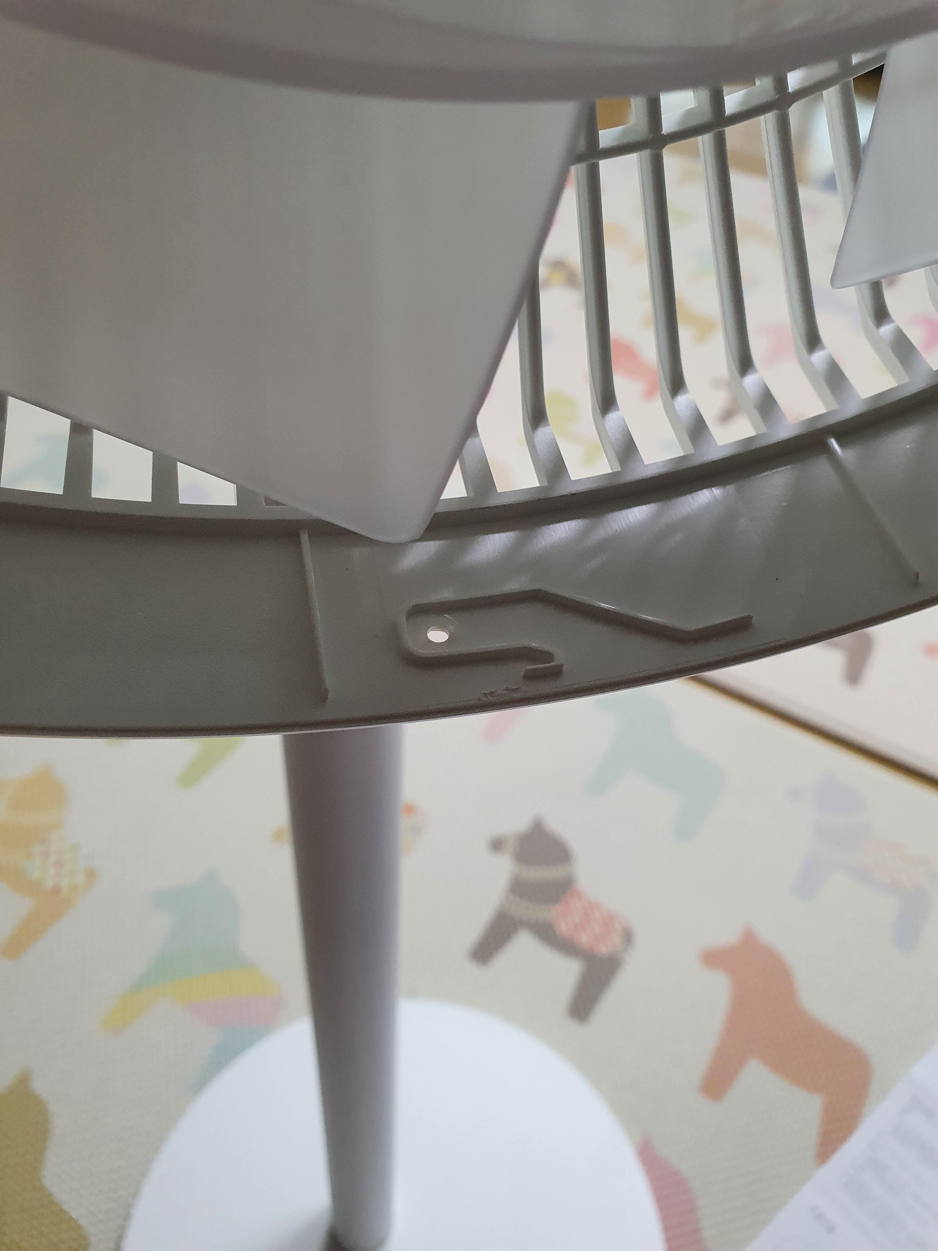 선풍기 망을 보면, 12시방향이 1자로 툭튀어 나온 부분이 있습니다. 거기에 맞춰서 돌려주면 고정이 됩니다.