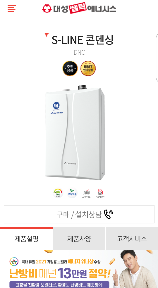 했지만, 해당 대성보일러 대리점은 일반 DNC만 있다고 해서.. 어쩔수 없이.. 프리미엄 DNC모델을 구매 할수 없었다.