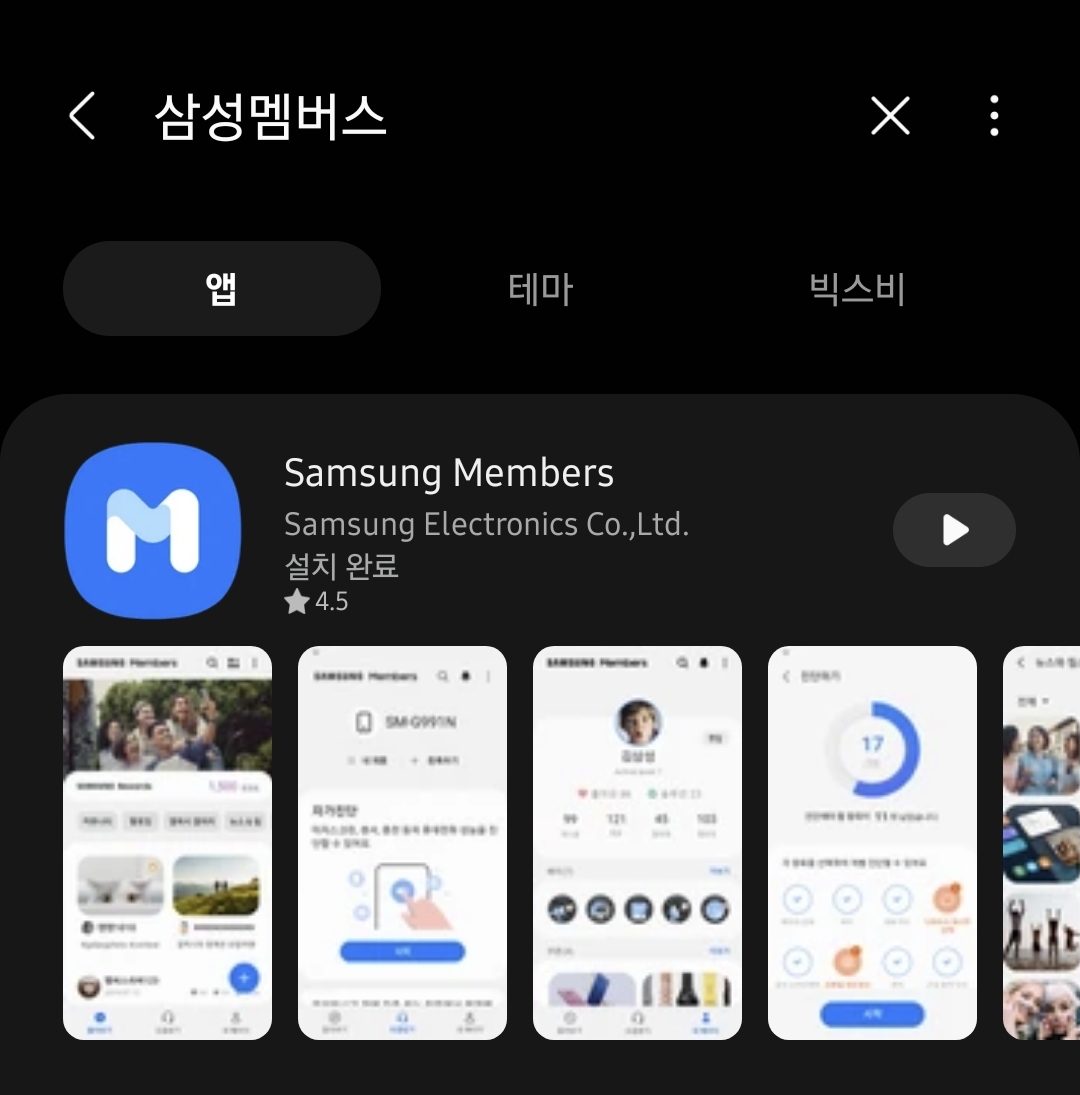 3. 영어로 파란색 아이코으로 된 Samsung Members를 다운로드 합니다.