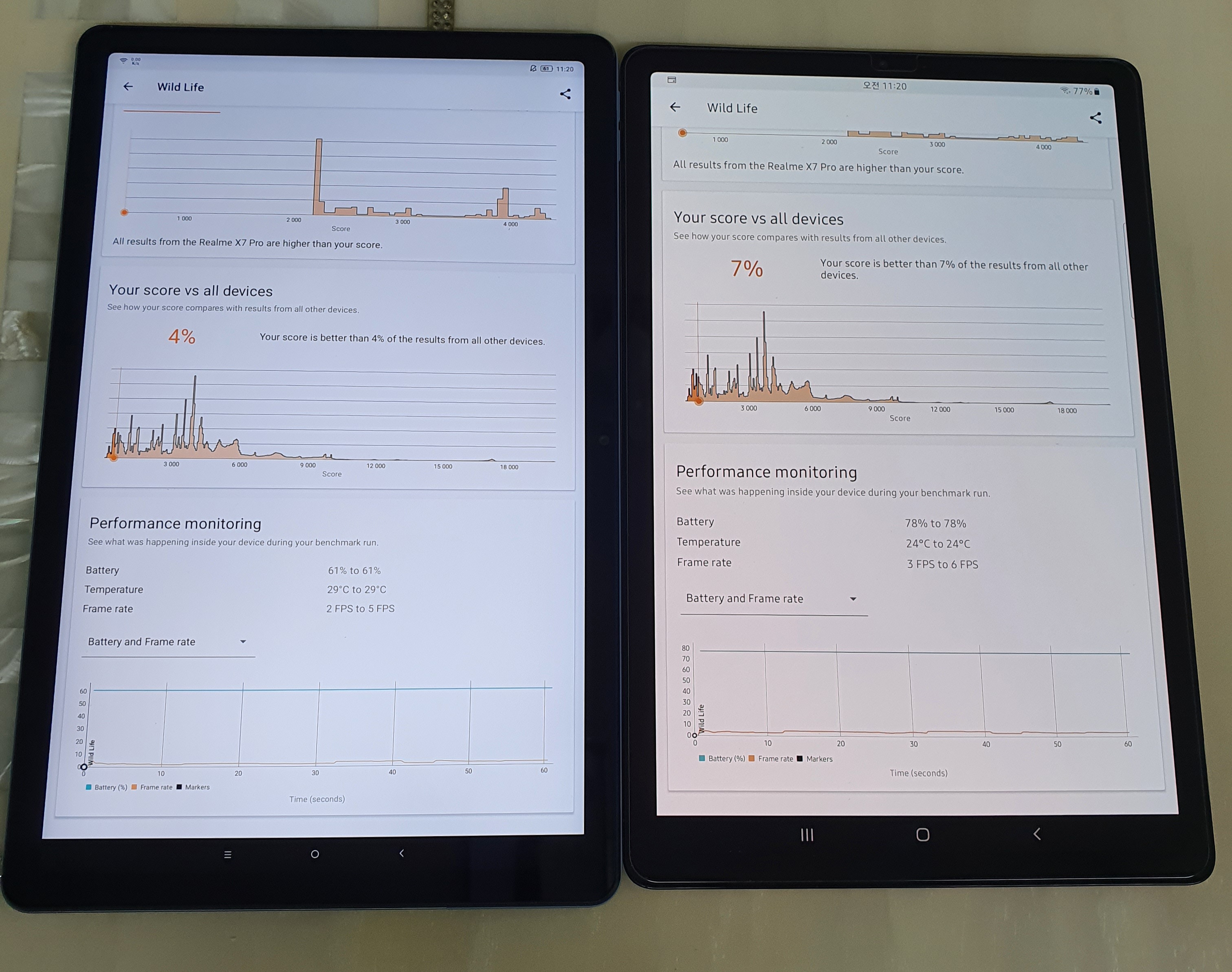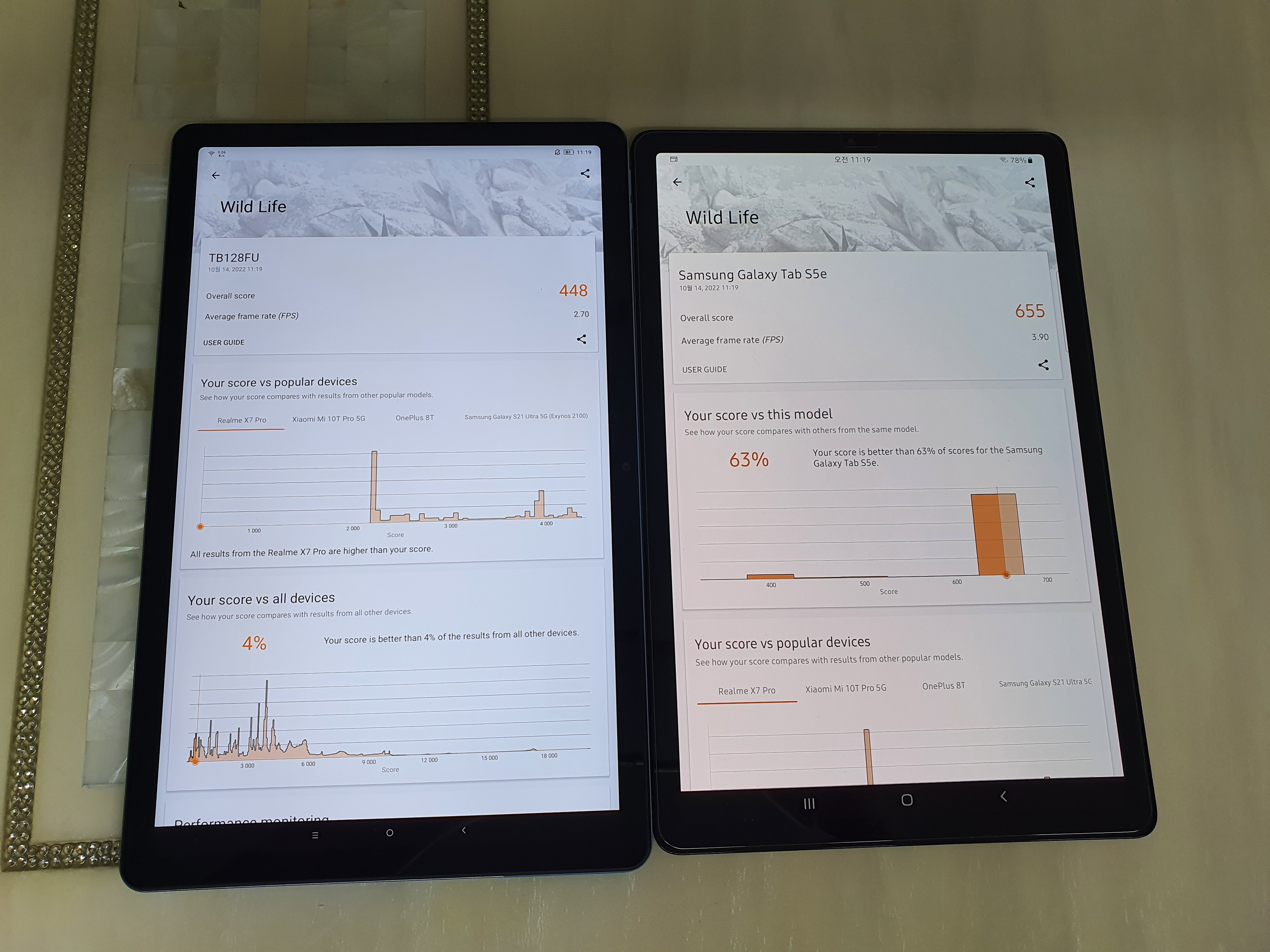 레노버탭 P12 vs 갤러시탭 S5e 벤치마크 점수