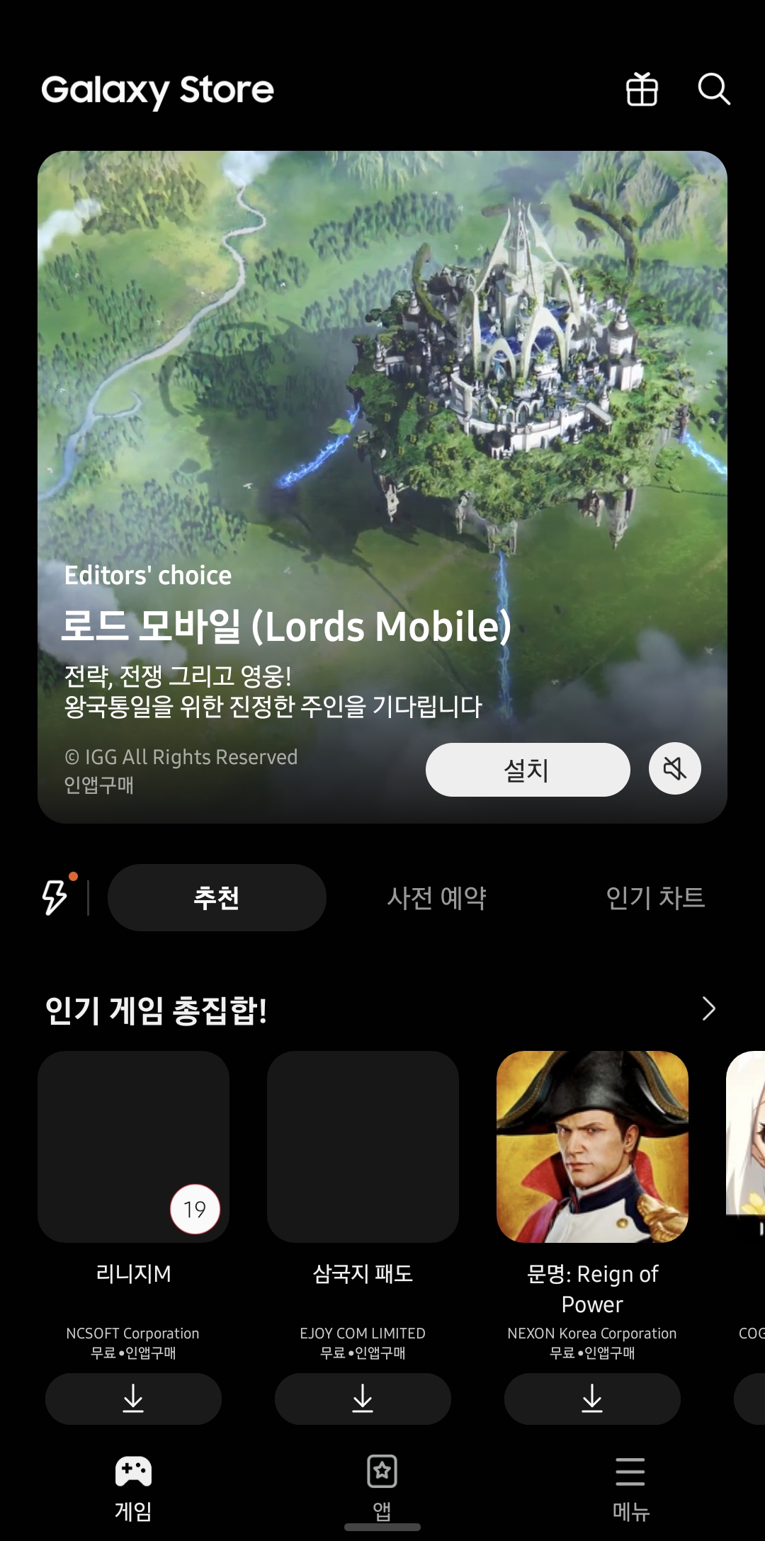 1. 스마트폰에서 갤럭시스토어(Galaxy Store)를 실행합니다.