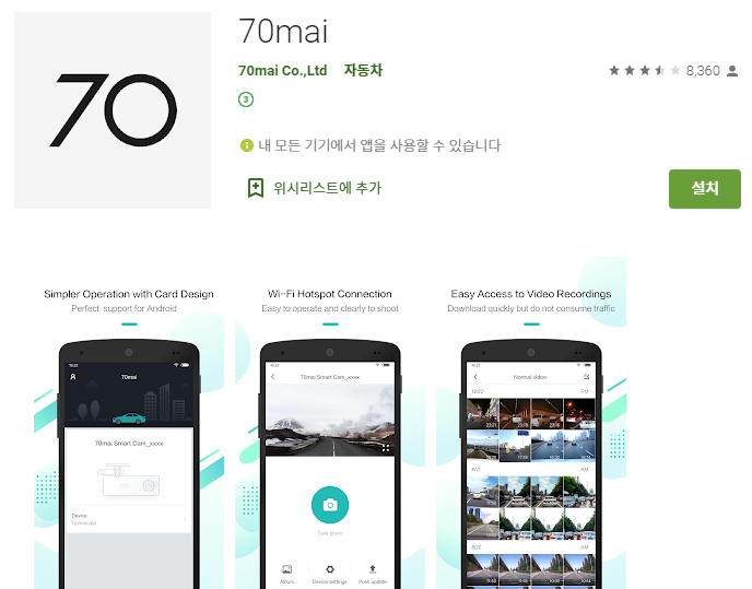 플레이스토에서 70mai라고 검색을 하면, 해당 어플이 나온다고 해서,