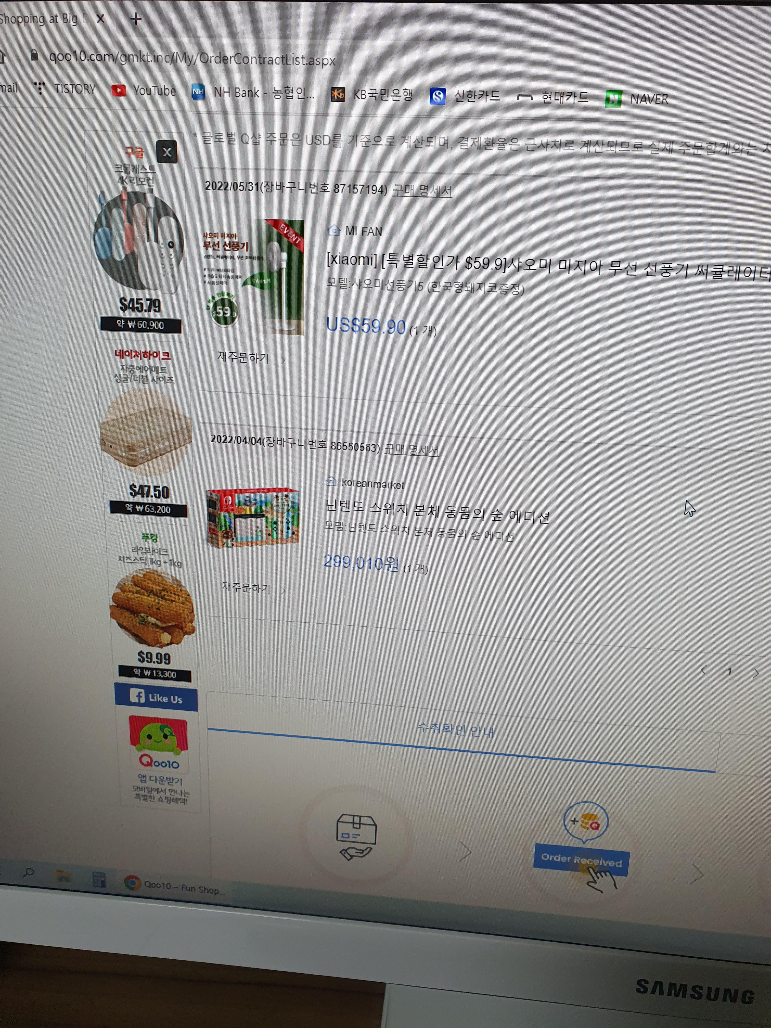 그래서 닌텐도 스위치를 큐텐에서 되게 싼가격으로 동물의숲에디션으로 구매를 하였다.