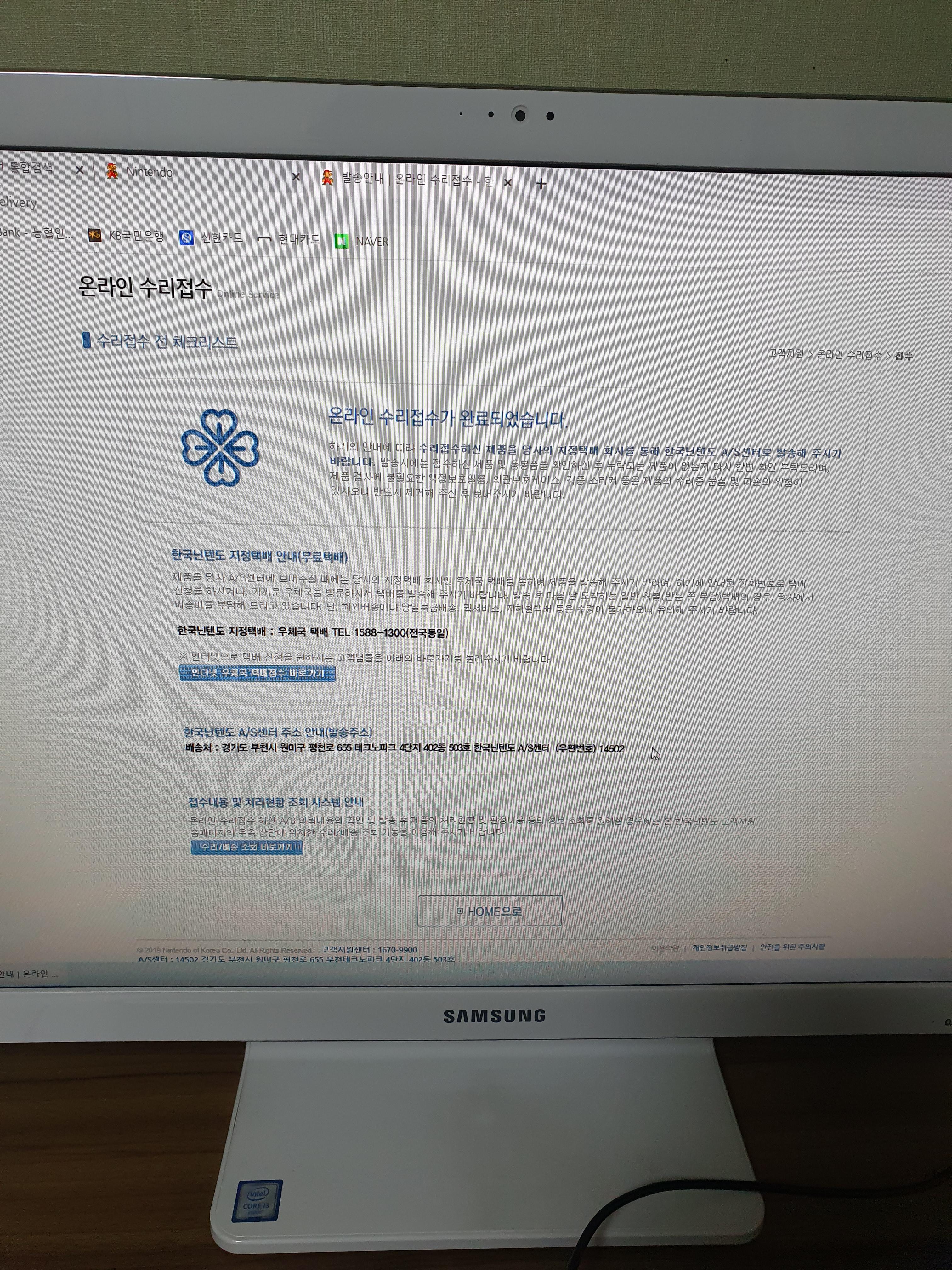 5. 접수는 끝났으면, 닌텐도 고객센터 해당 주소로 우체국 택배로 착불로 발송하면 됩니다.