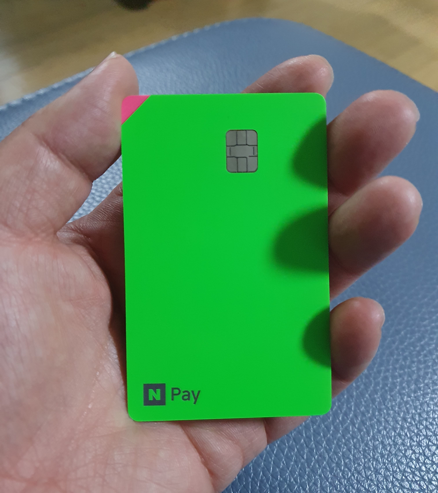 디자인의 네이버의 시그니처 색상인 녹색이 기본 바탕에 카드 표면에 네이버의 N Pay가 씌여 있습니다.