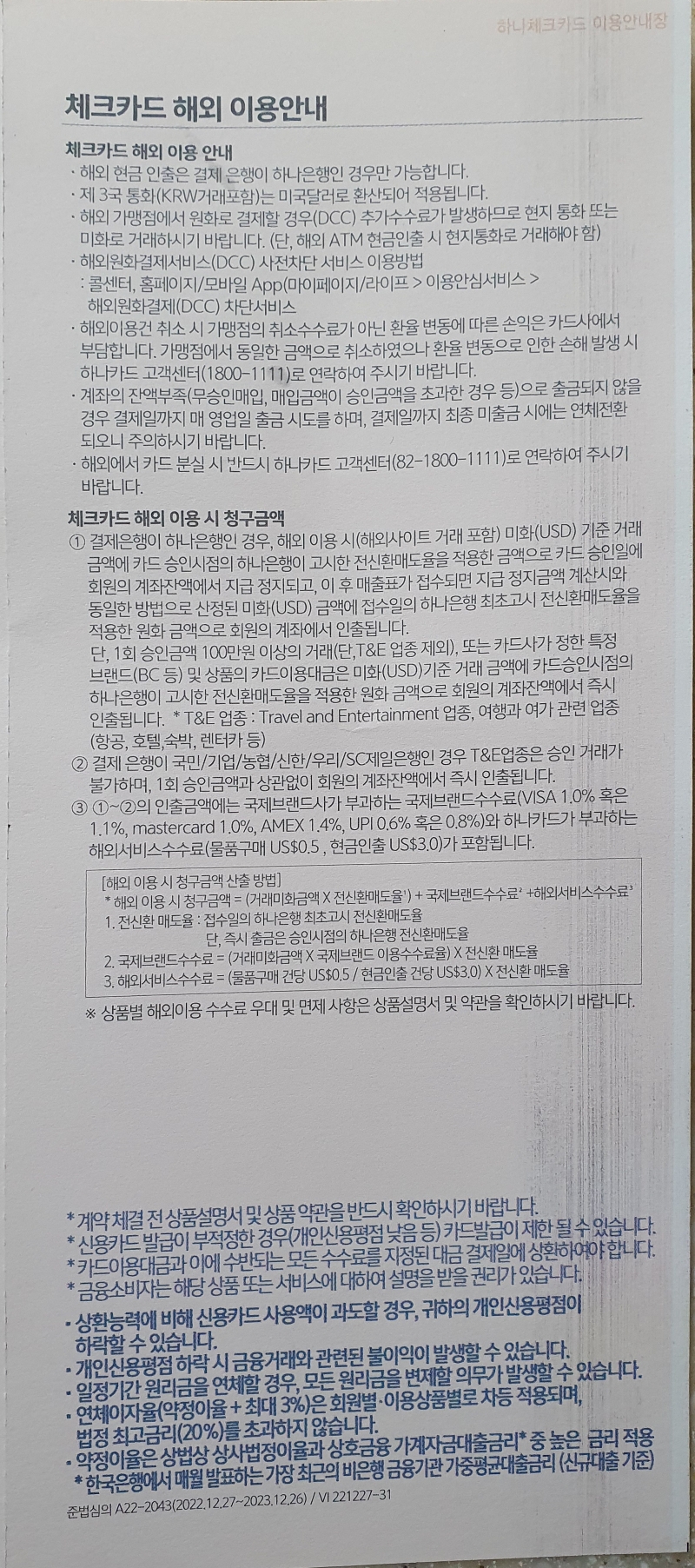 그리고 체크카드를 원하시는 분들은