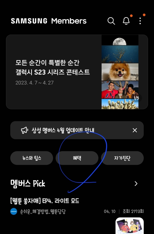 1. 첫 번째로 삼성 멤버스 앱을 실행합니다.