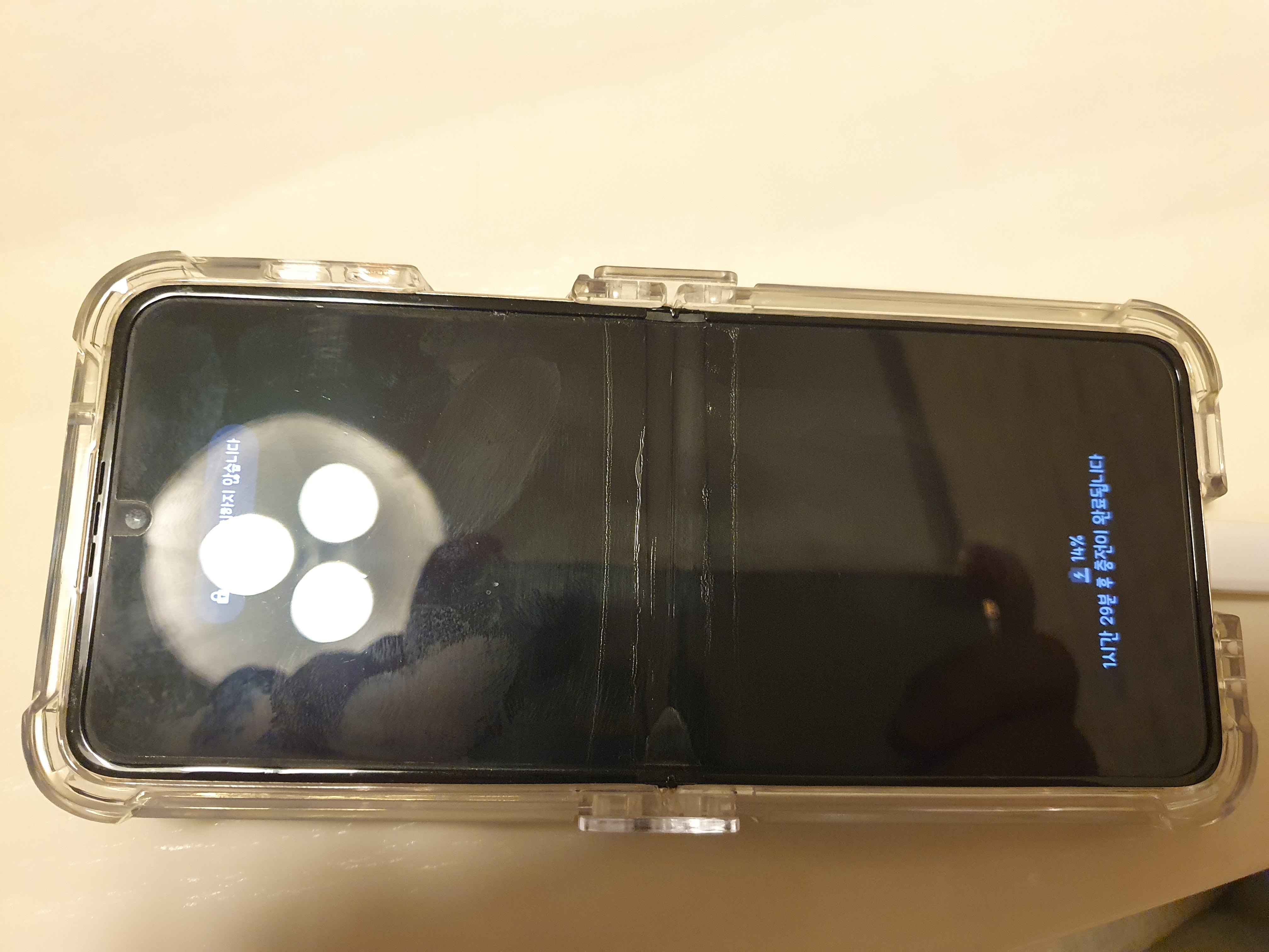 지금 z플립4 액정 보호필름의 가운데가 뜨고 있어서,