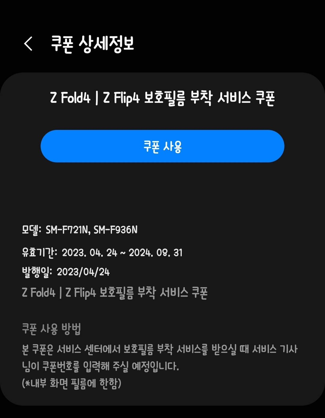참고로 삼성 서비스센터에서 z플립4의 액정보호필름 교환비용은 17000원입니다.