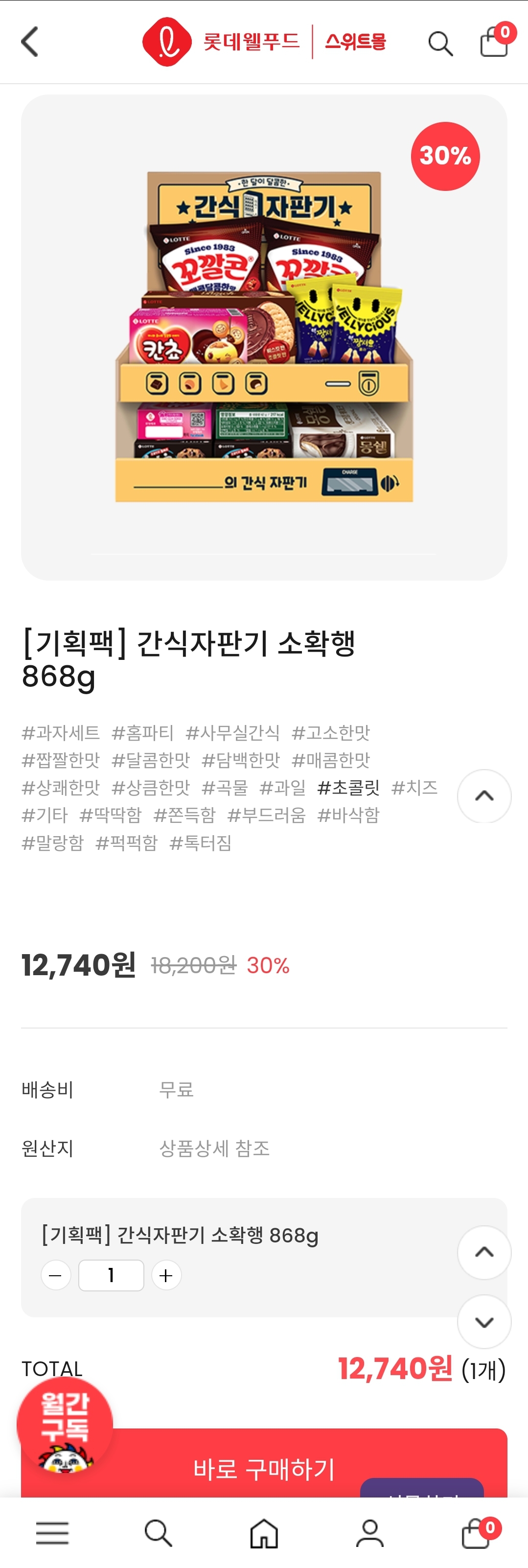 간식으로 과자를 많이 사 먹는데 롯데 스위트몰에서 판매하는 간식 자판기라는 상품이 있는데...