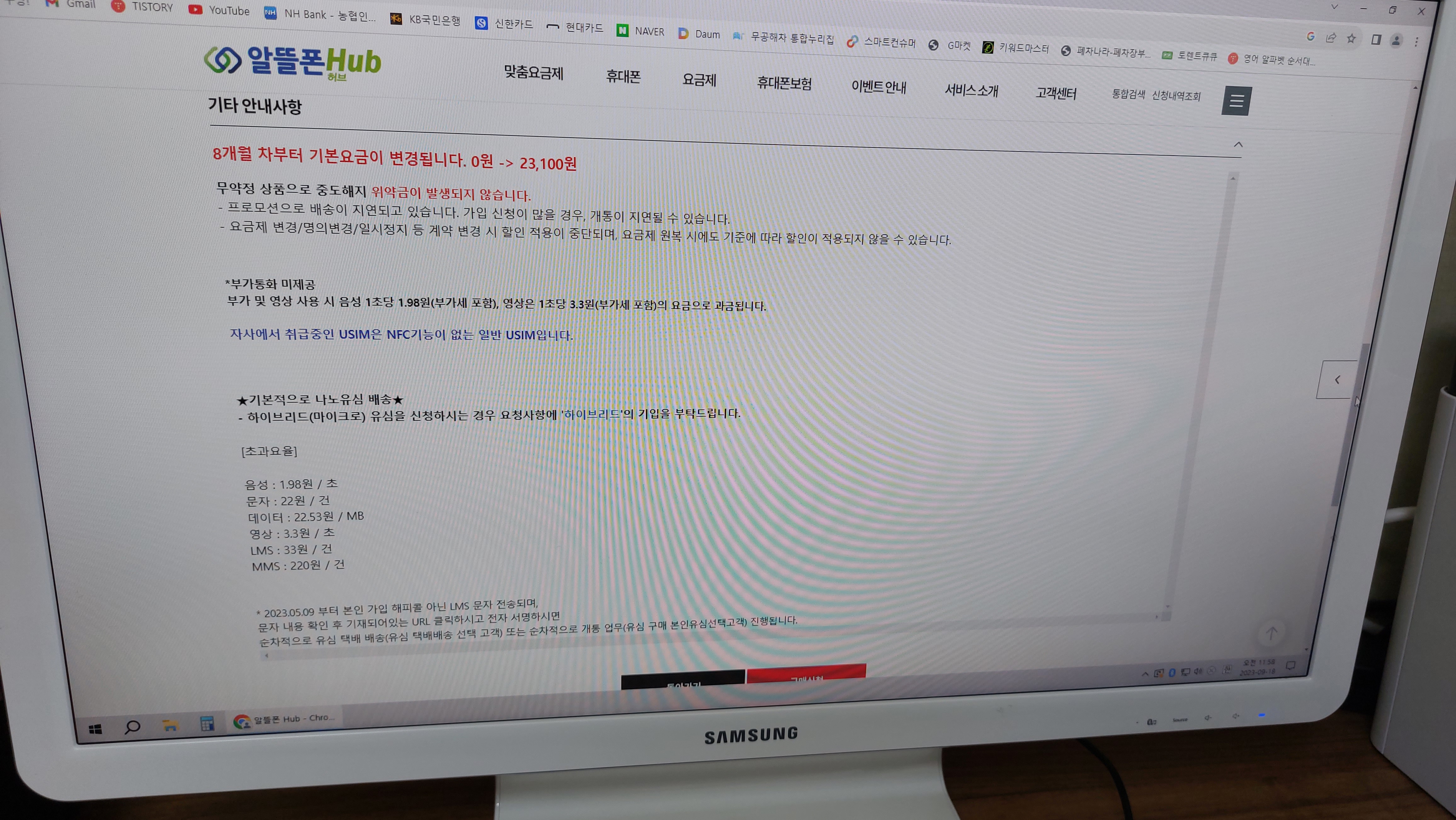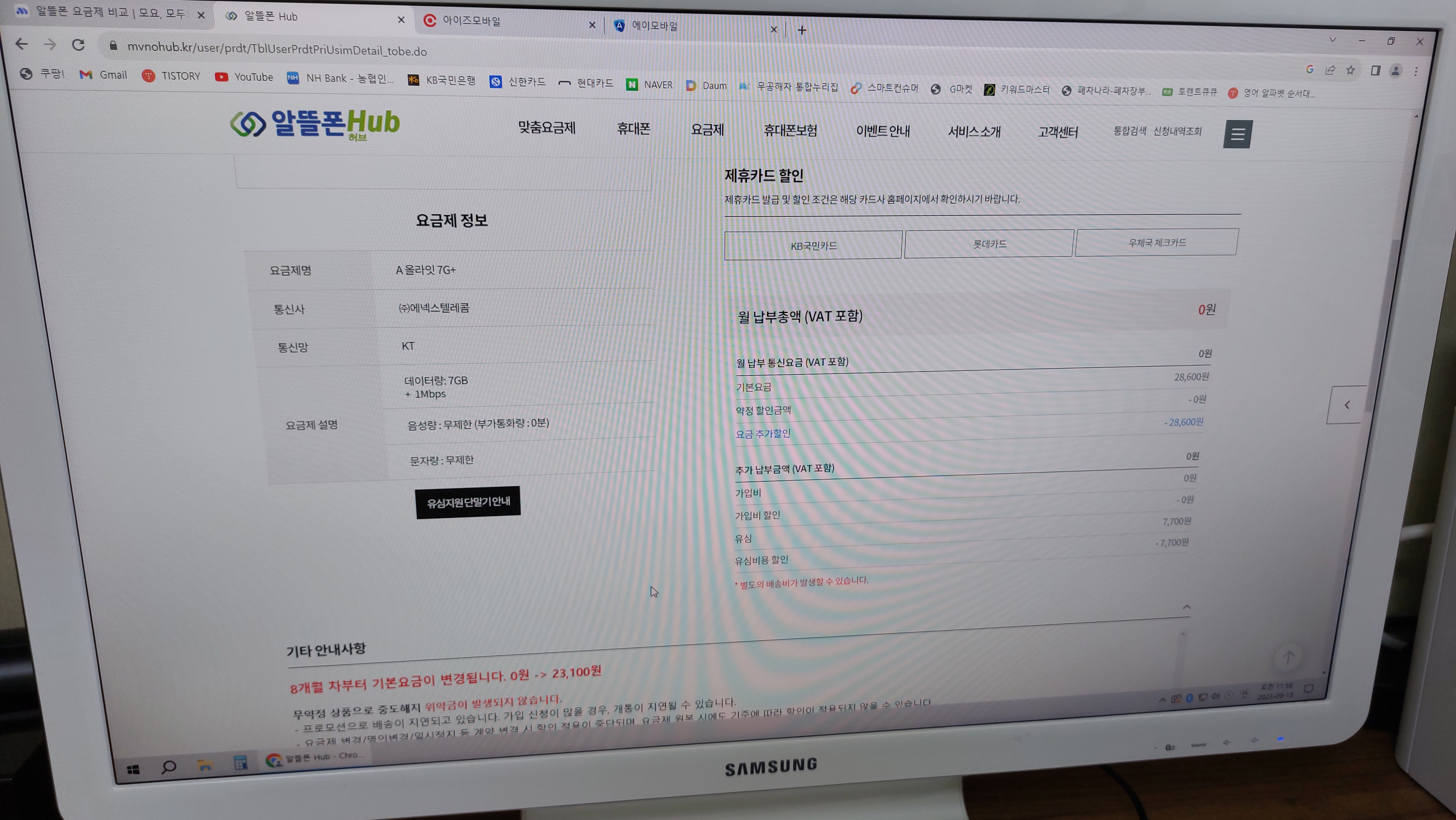 요금 : 7개월동안 무료, 8개월째부터 23100원