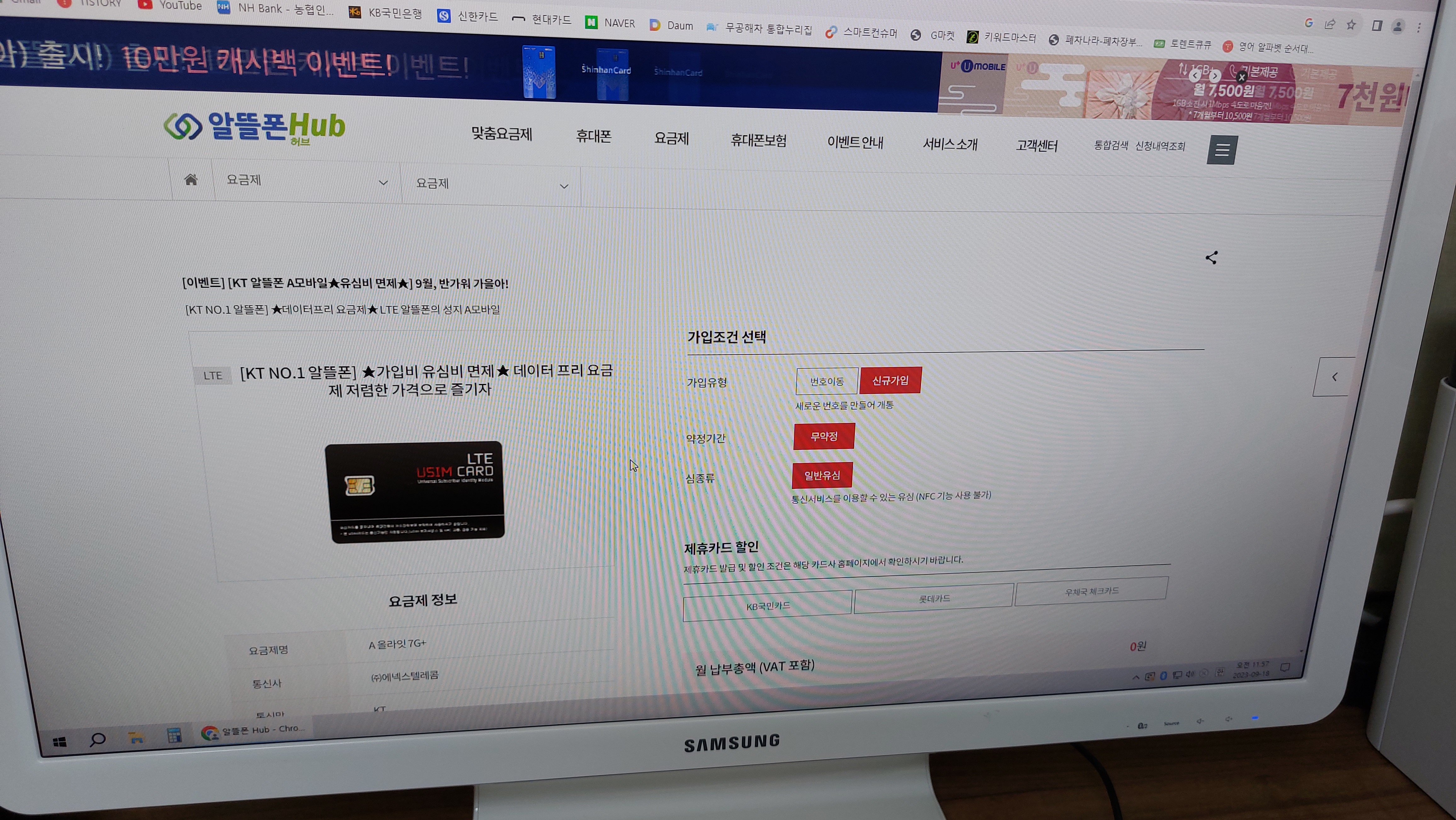 그래서 그중에서 7개월동안 무료로 데이터 무제한, 통화 문자 무제한 요금을 쓸수 있는 요금제가 있어서