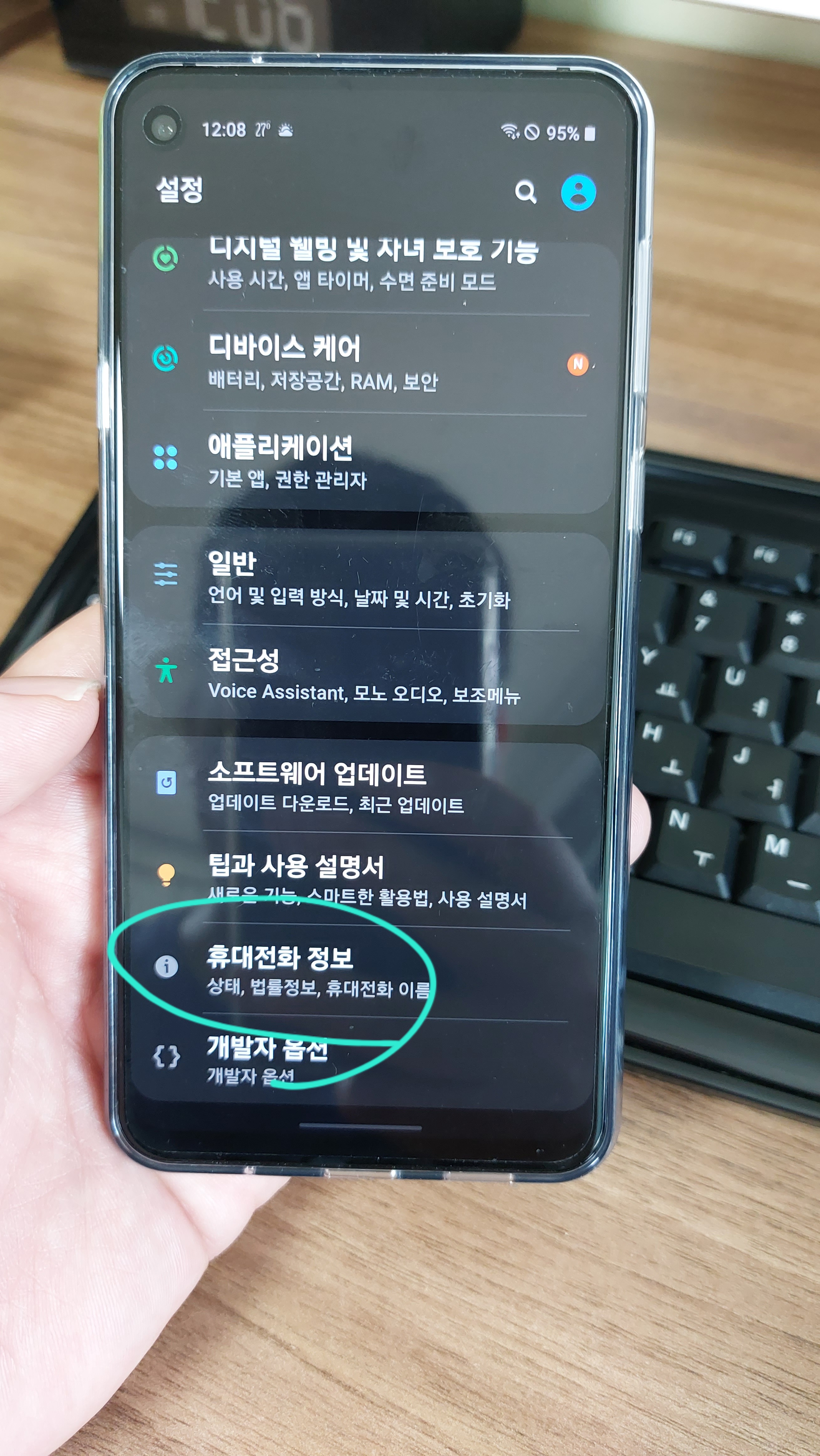 1) 스마트폰 설정을 누르고, "휴대전화 정보"를 선택한다.