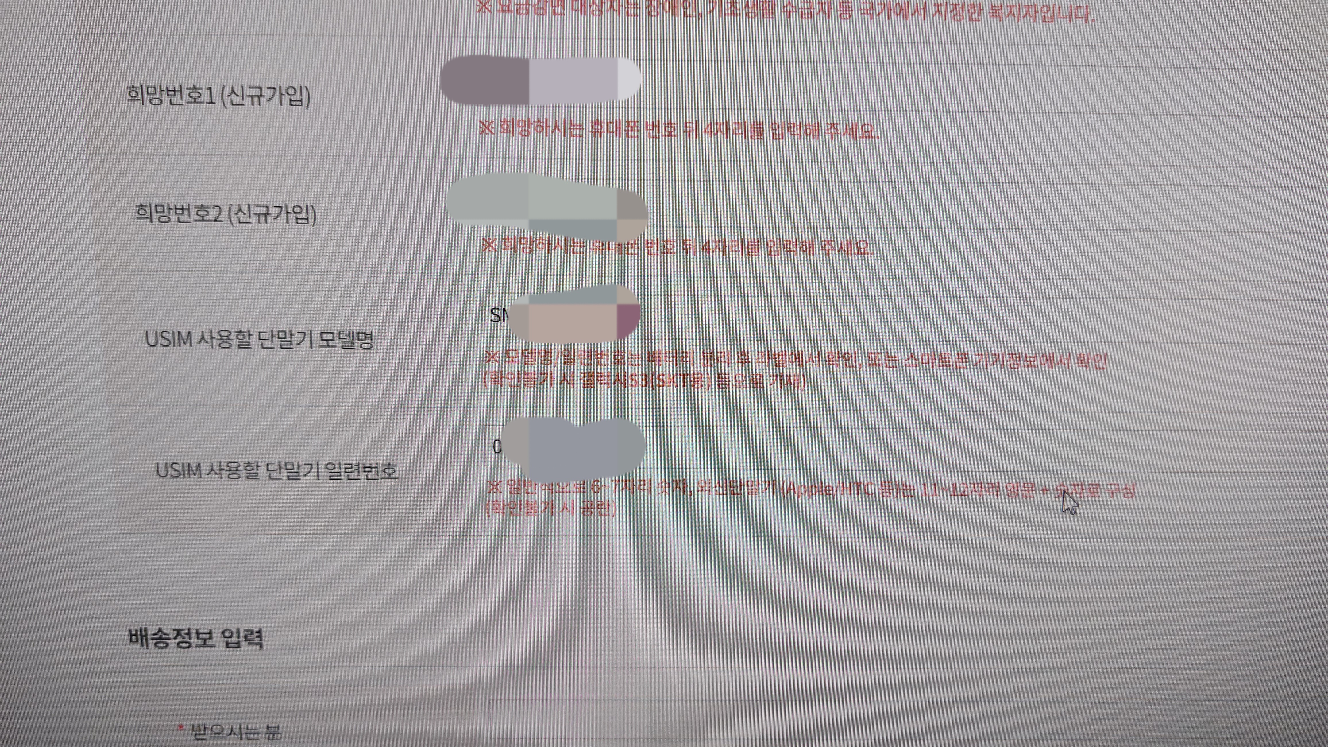 새 로사용한 단말기의 모델명과 일련번호를 입력하라고 하는부분은?